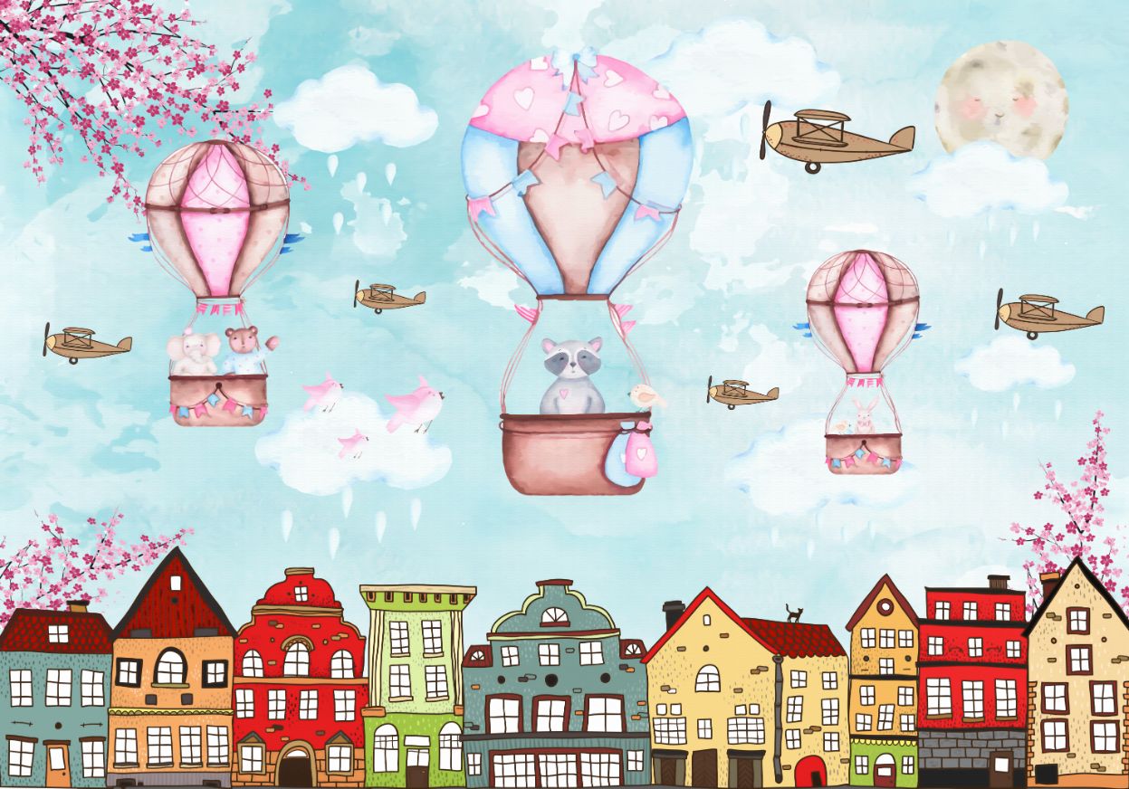Balloon wallpaper will make your room look better. Their bright colours and lifelike hot air balloons give your walls a fun, lively look. It makes the room feel light and happy.