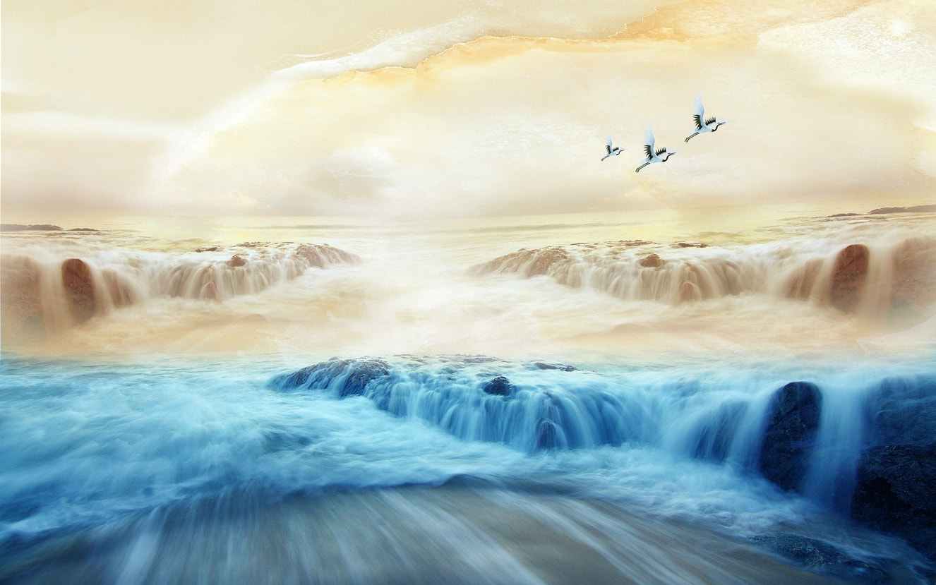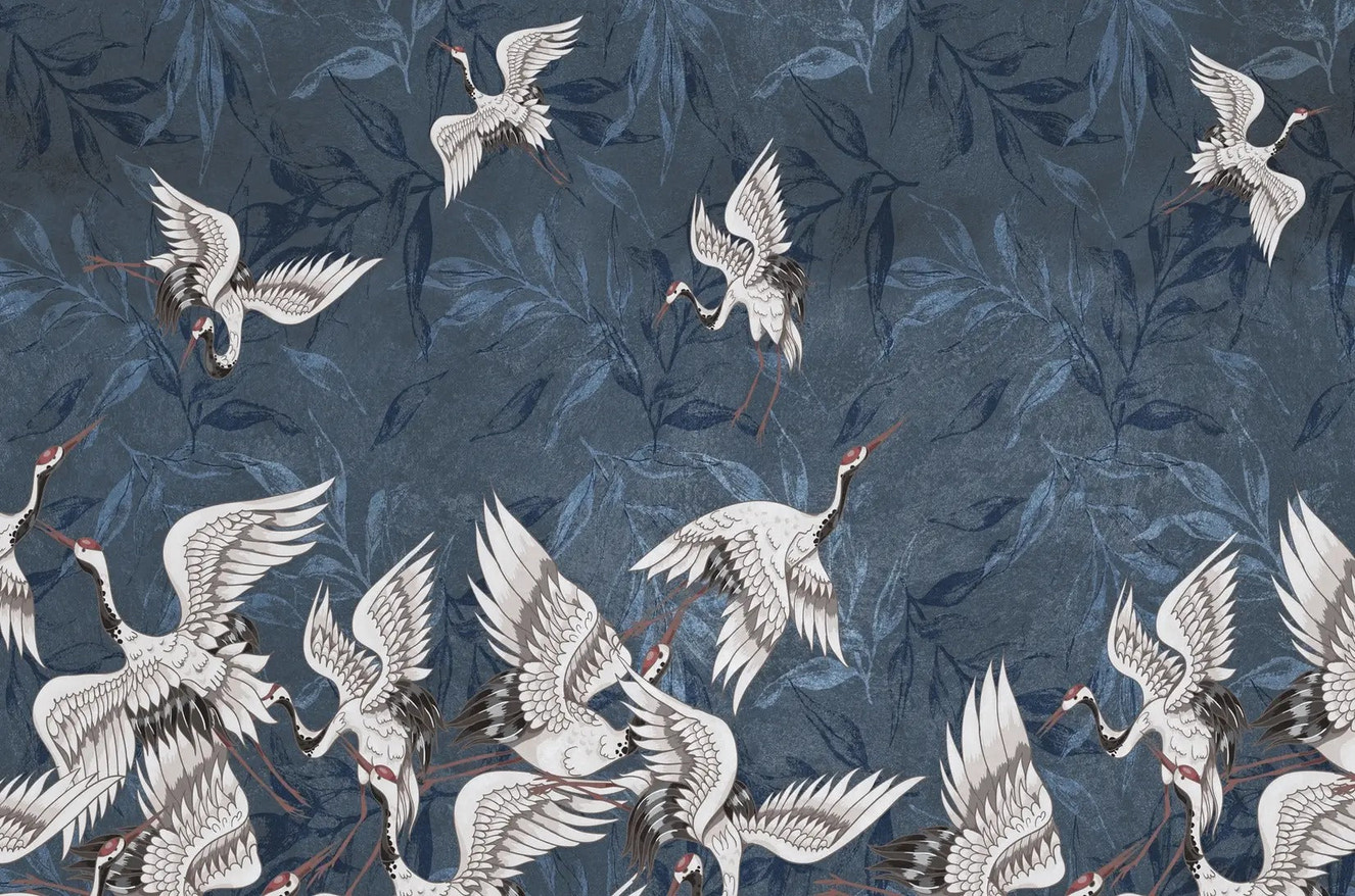Misty Mountains Flock Cranes Mural