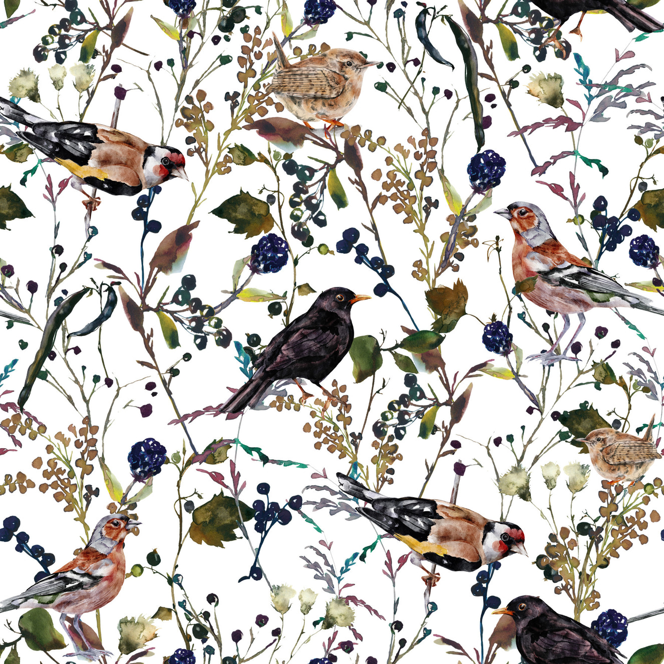 Birds & Berries Wintry Watercolor