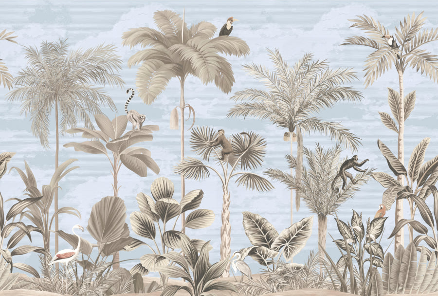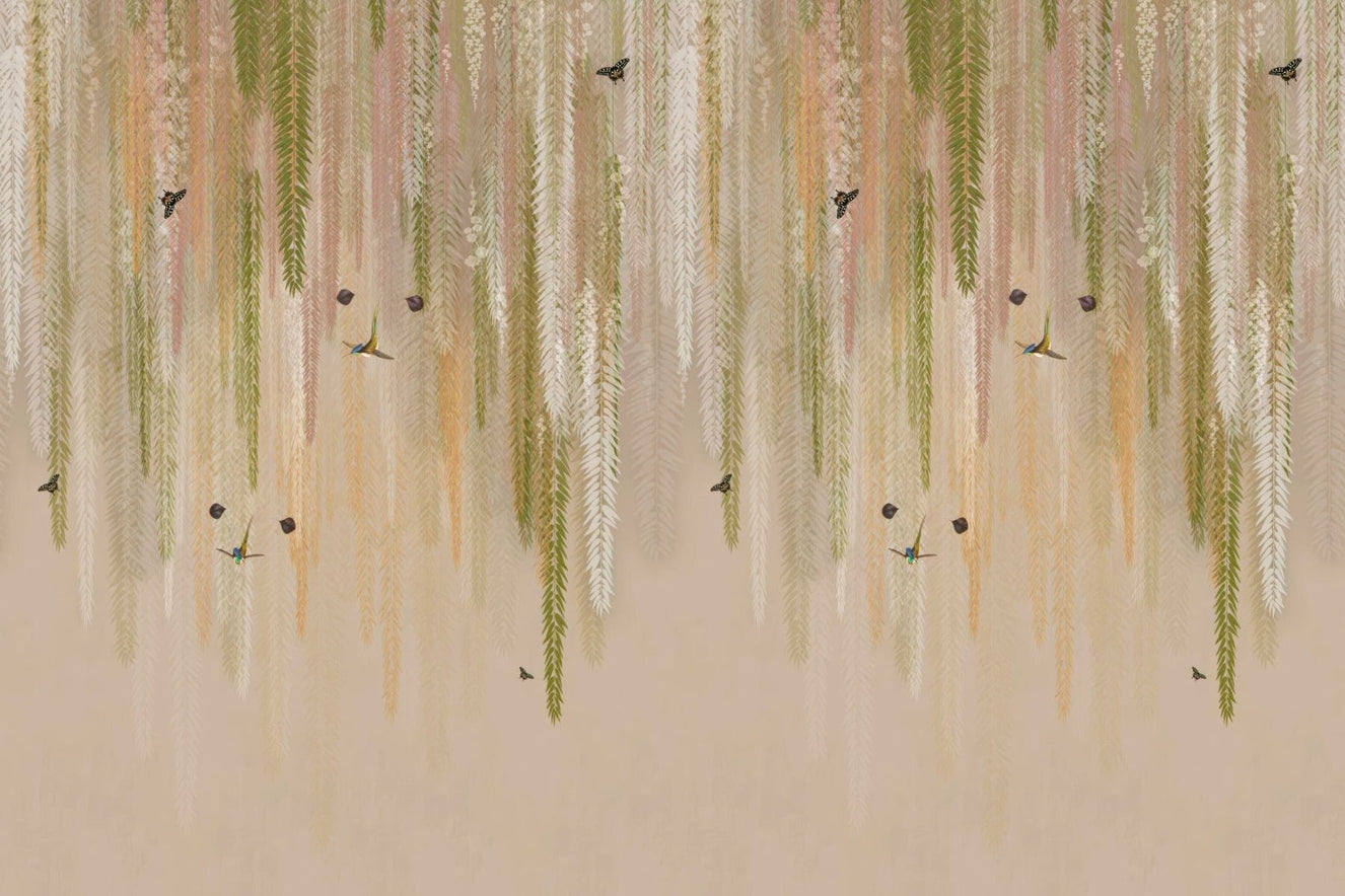 From tropical broad leaves to small botanical leaves, the repeat pattern in beige covers every flaw of your walls. It not only looks stunning but also creates the illusion of space when hanging in any one of the accent walls.