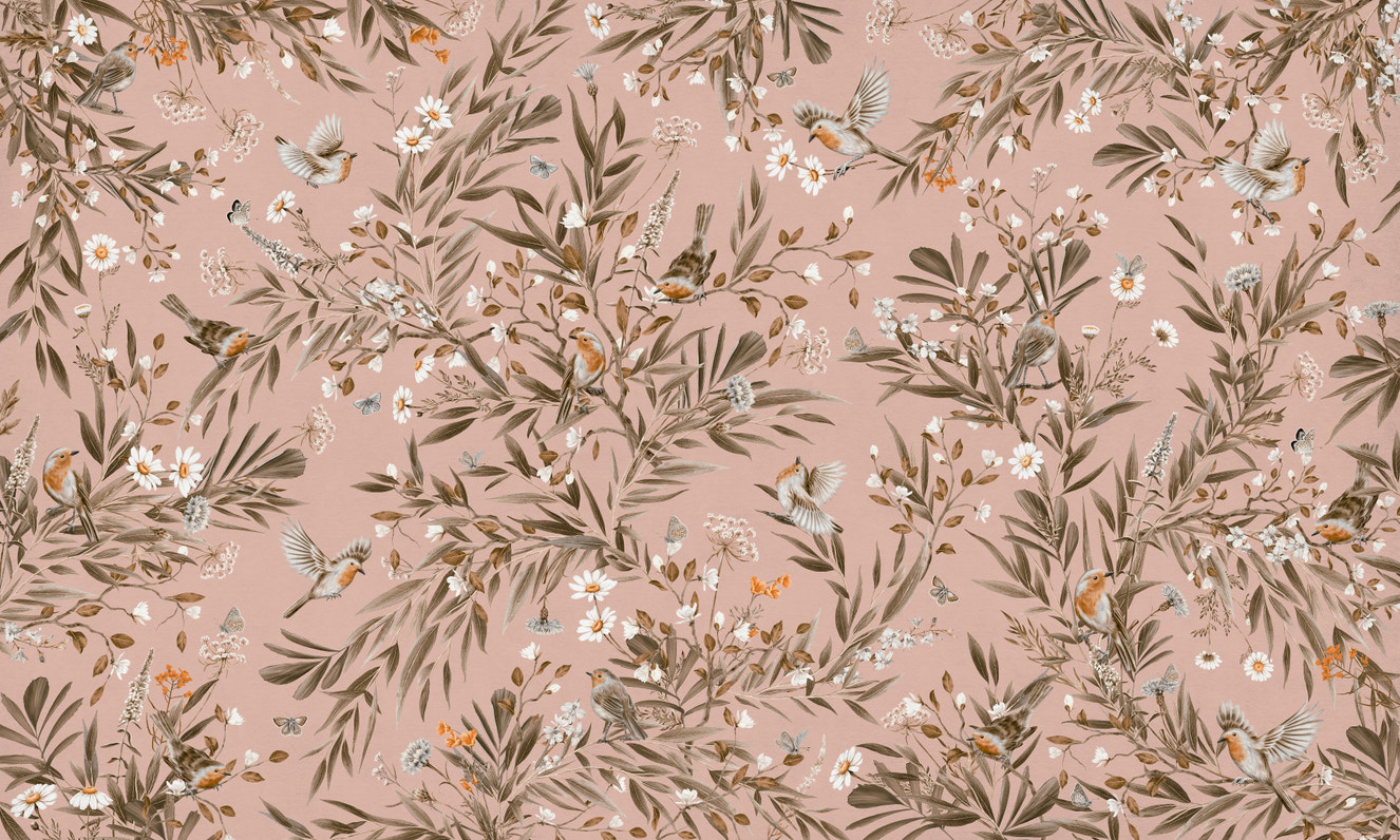 Garden birds wallpaper is perfect for people who like birds in a yard setting. This design brings a variety of birds amid flowers and foliage to your walls, making the atmosphere cosy or romantic. The detailed illustrations of garden birds are timeless pieces that fit seamlessly within many interior styles.