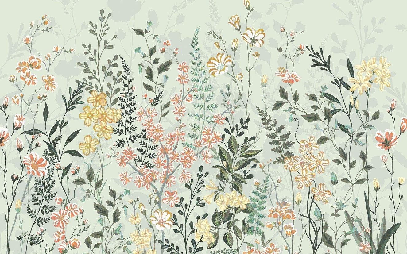 Scandinavian Wildflowers Watercolor Meadow for Kidsroom
