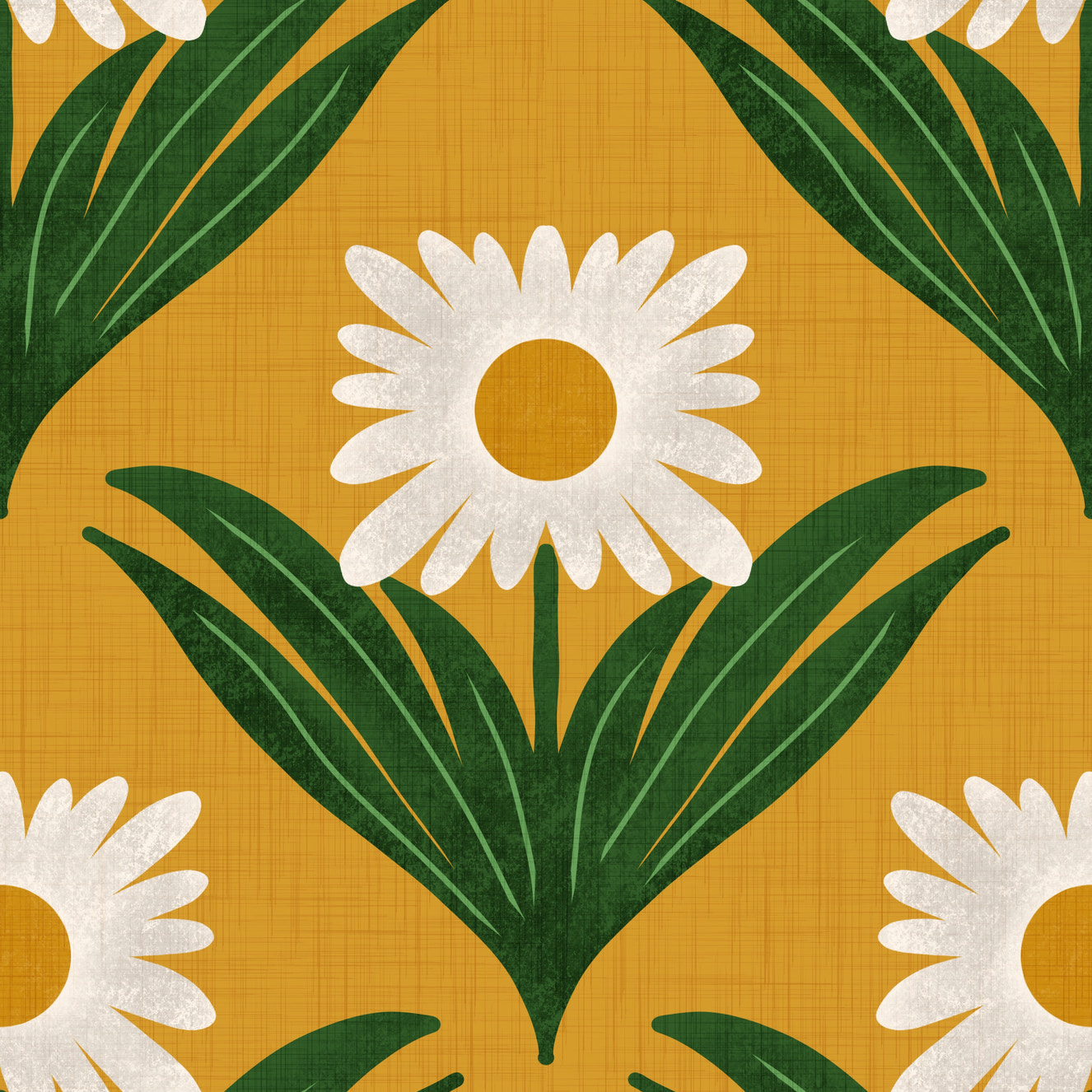 Retro 70s Daisy Floral on Yellow - Mod Flower