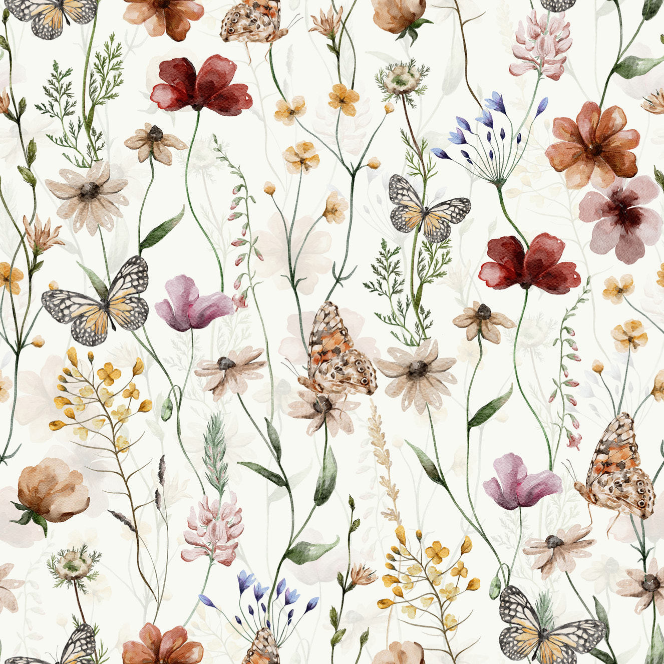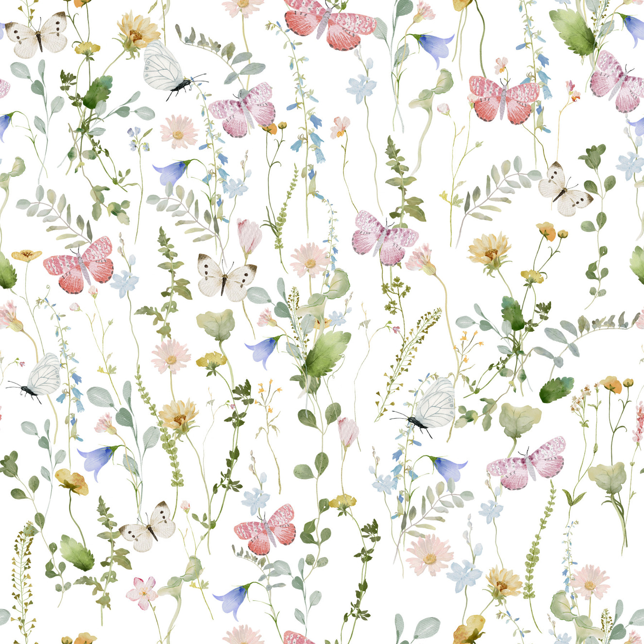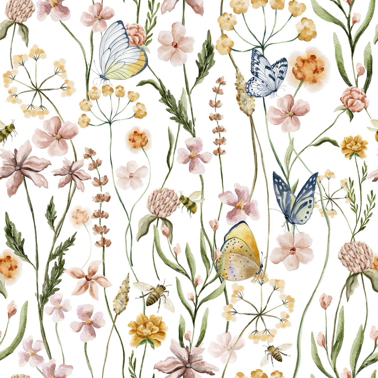 - Butterfly with flower wallpaper delicately combines floral and wing designs to welcome spring indoors.