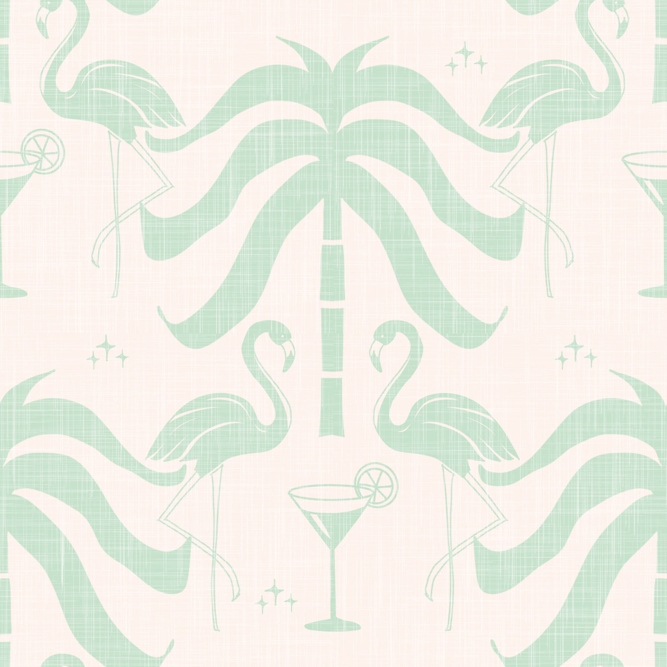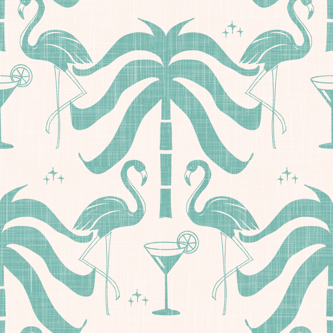 Tropical Palm Springs Flamingo Beige Aqua Green