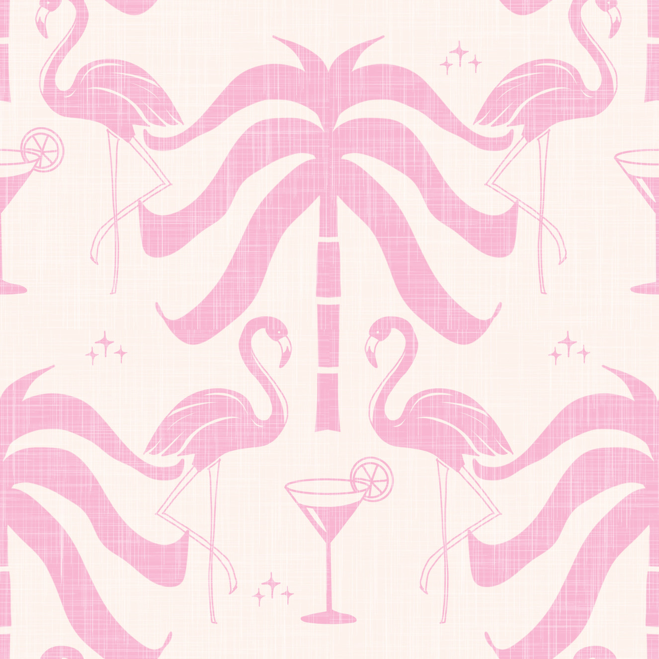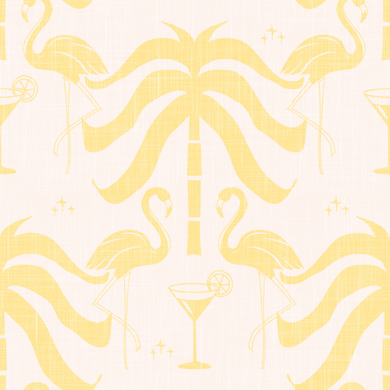 Tropical Palm Springs Flamingo Beige Butter Yellow