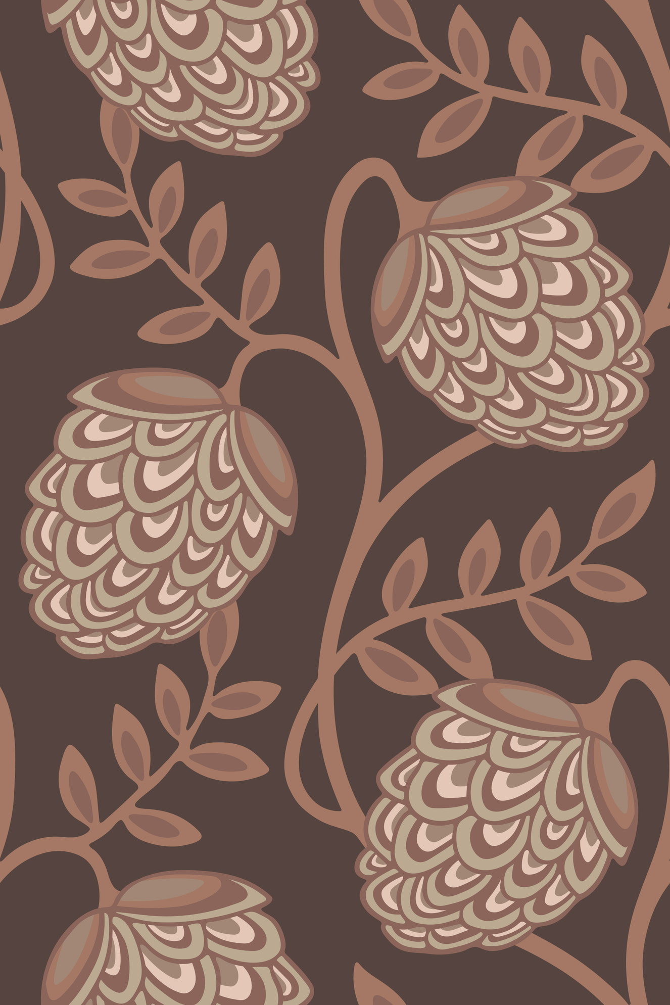 Oversized Vintage Flora Wallpaper With Traditional Lotus