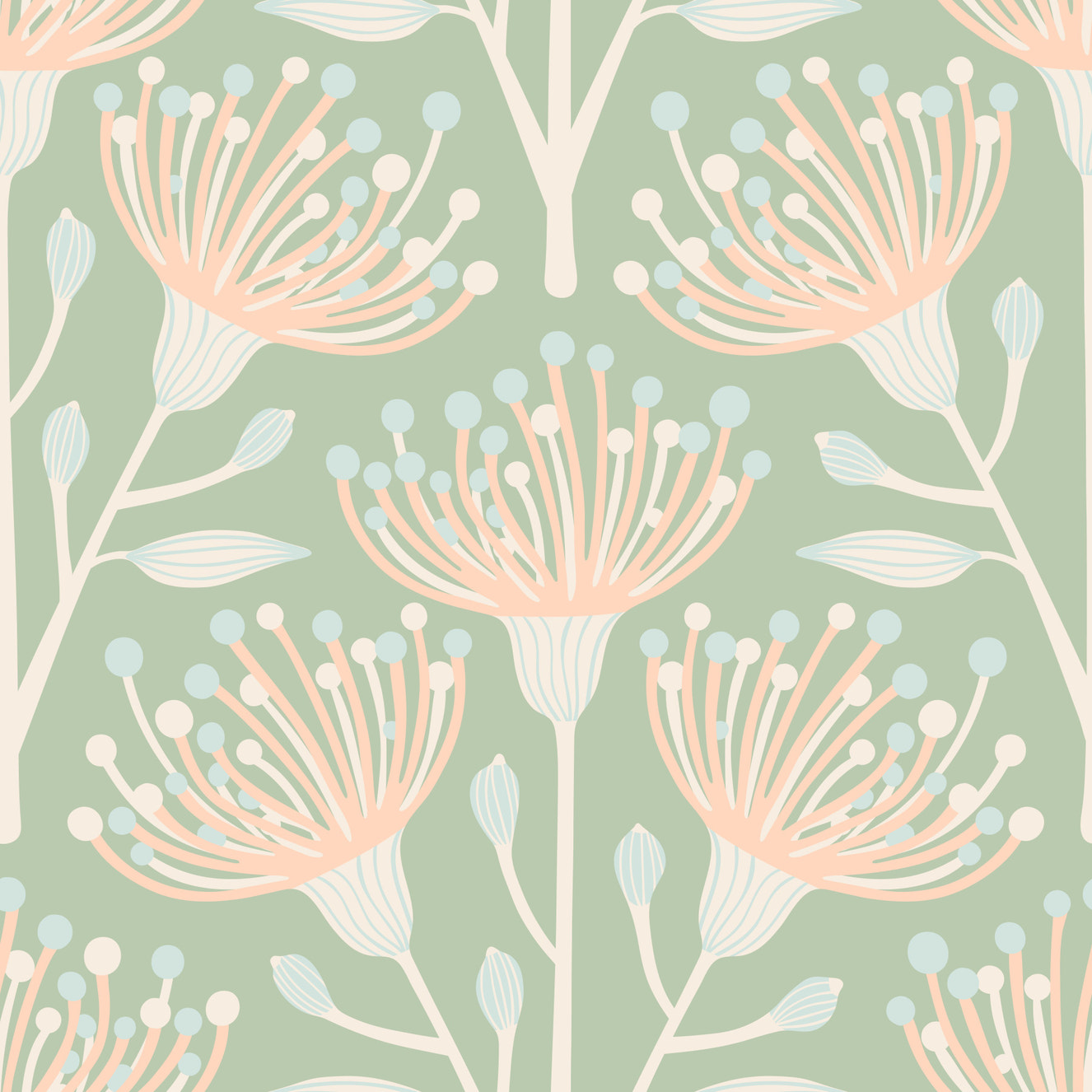 Eucalyptus Floral Botanical Cottage Blush on Sage Green