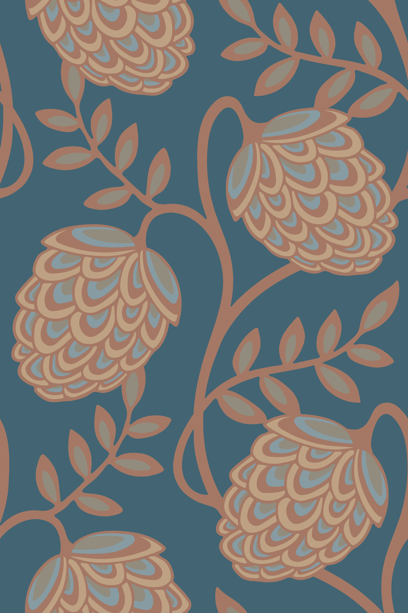 Oversized Vintage Flora Wallpaper With Traditional Lotus