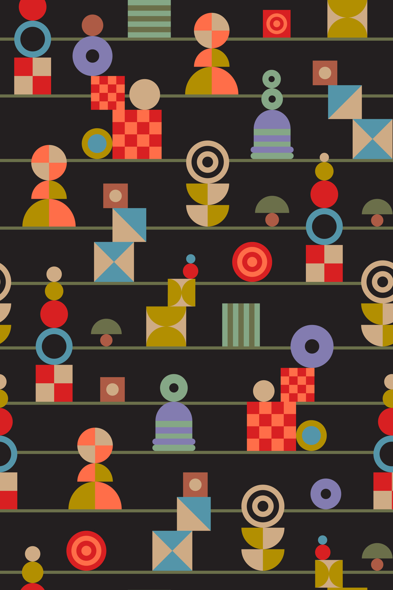 Stacking Retro Geometric Shapes Stripes Multicolored Charcoal