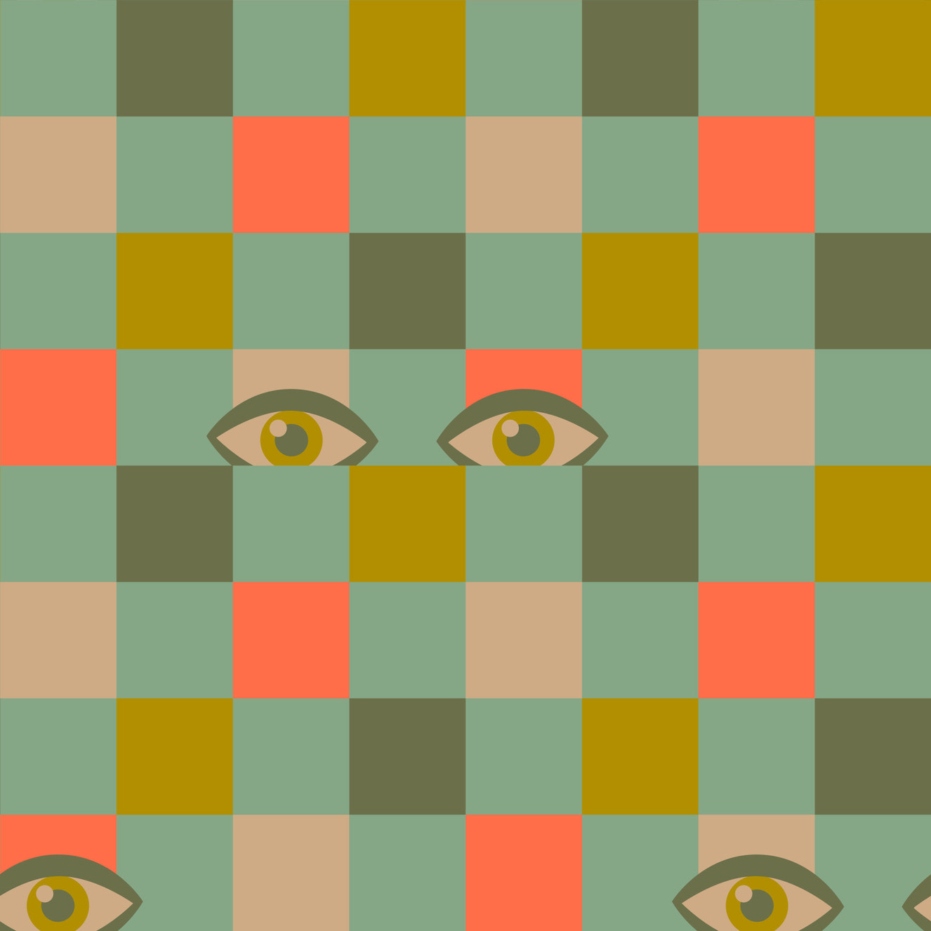 Peekaboo Retro Eyes Checkerboard Red Cream Purple Black Baby Blue