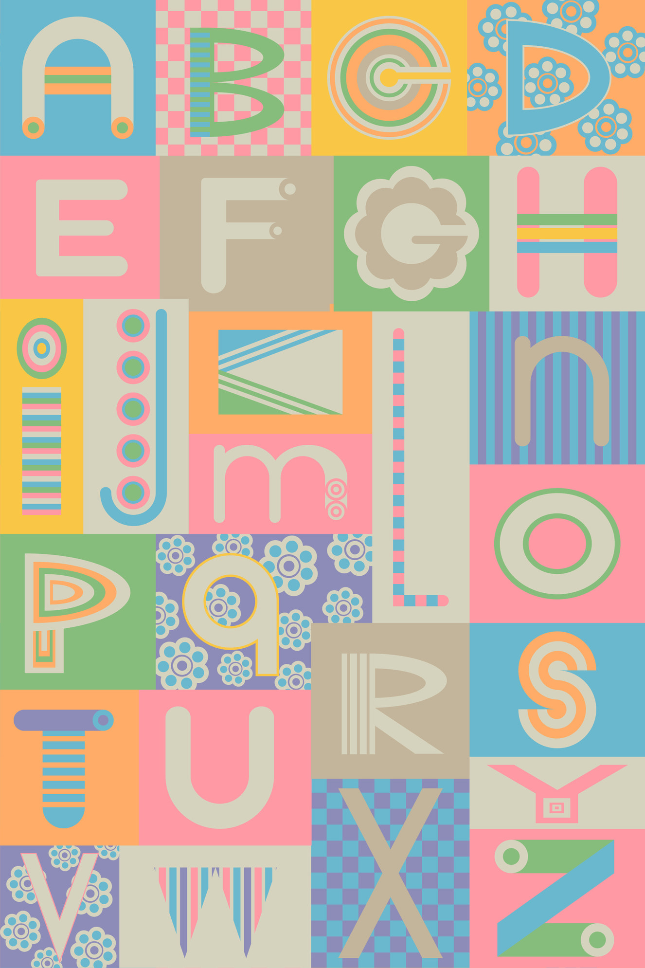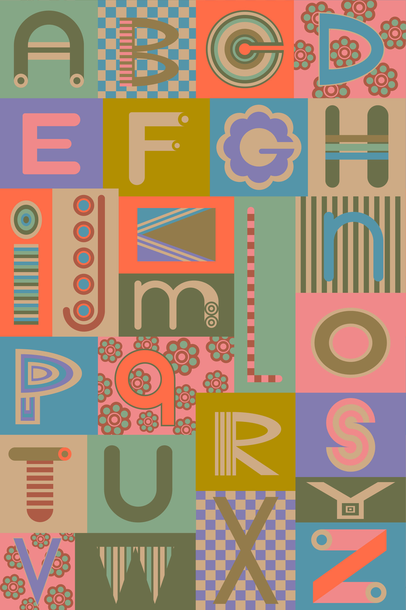 Geometric ABCs Retro Alphabet Graphic Lettering Postmodern Colors
