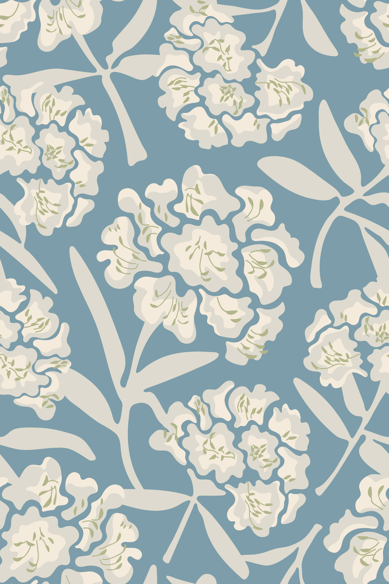 Rhododendrons Retro Floral White Gray Soft Pastel Blue