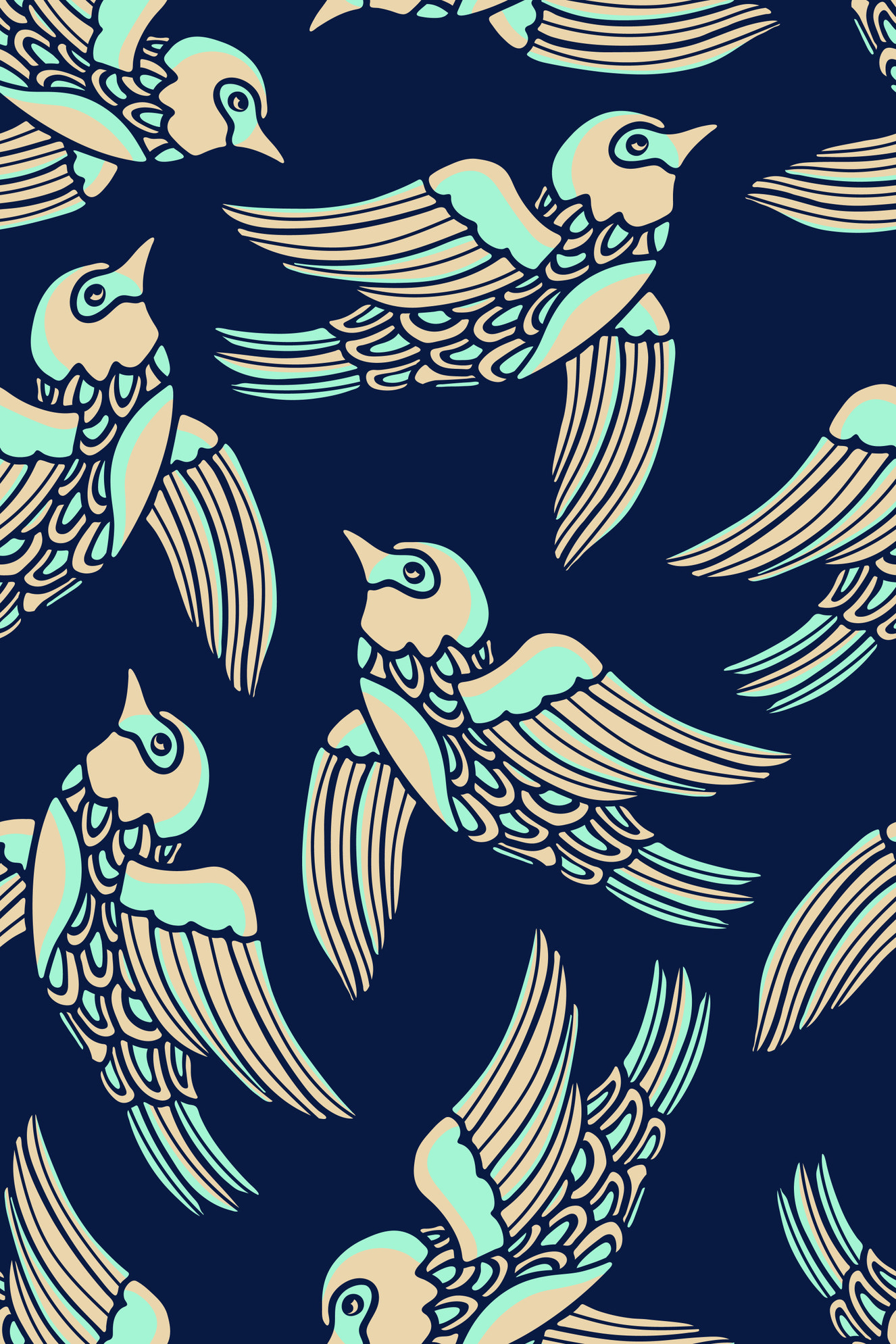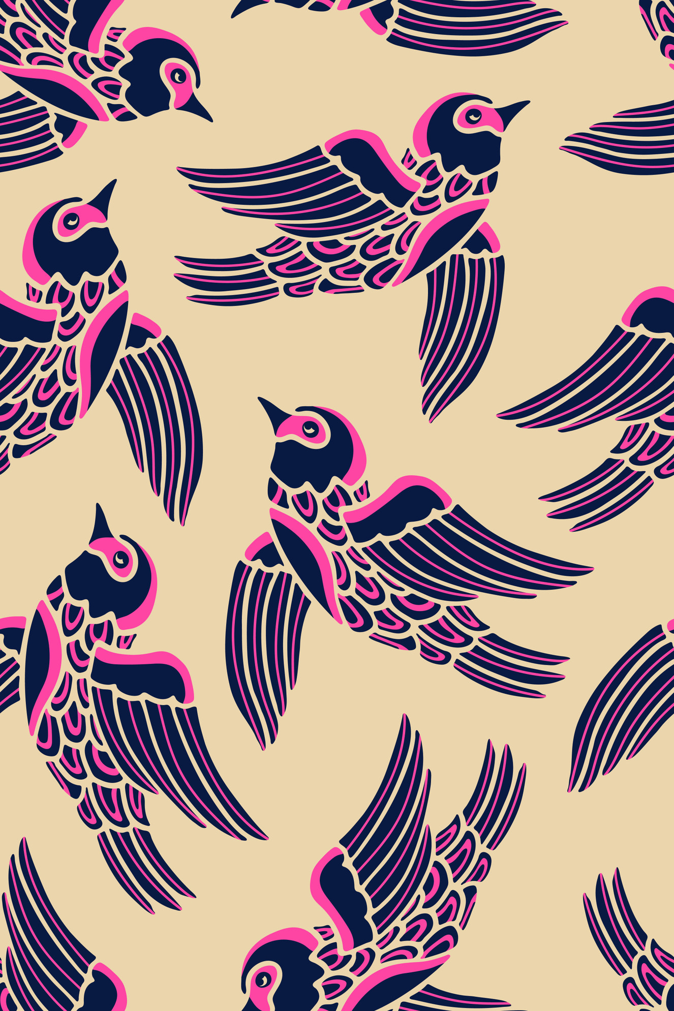 Birds Flying Higher in Fuchsia Pink Midnight Blue Beige
