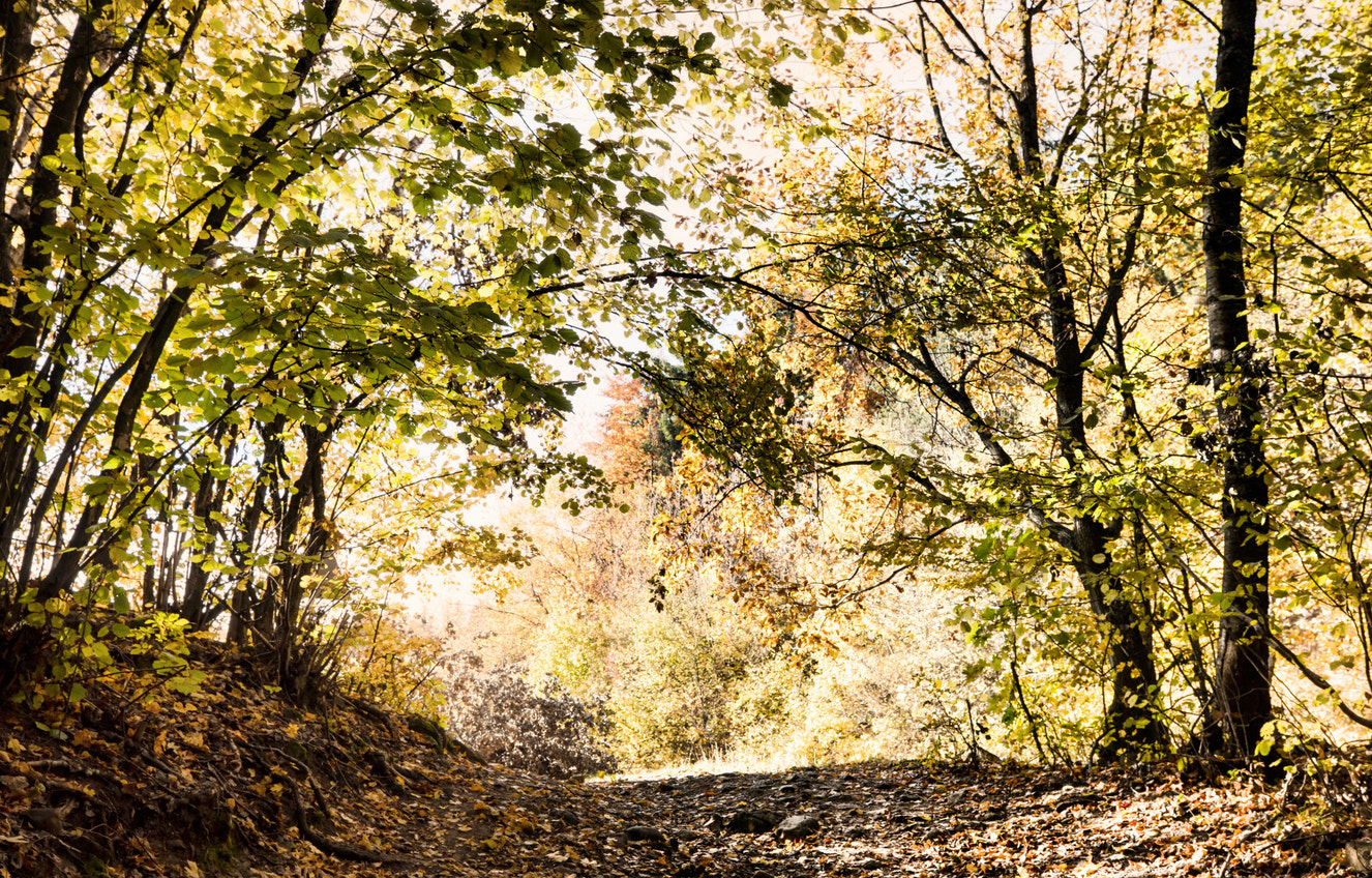 Autumn Pathway Through Golden Leaves - Nature Photography Print