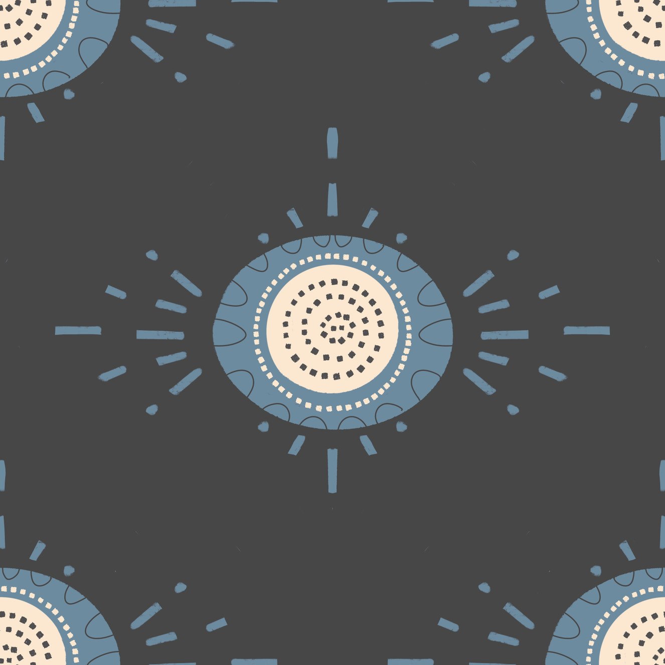 Folk Bloom Radiance Dusty Blue - Mid Century Floral
