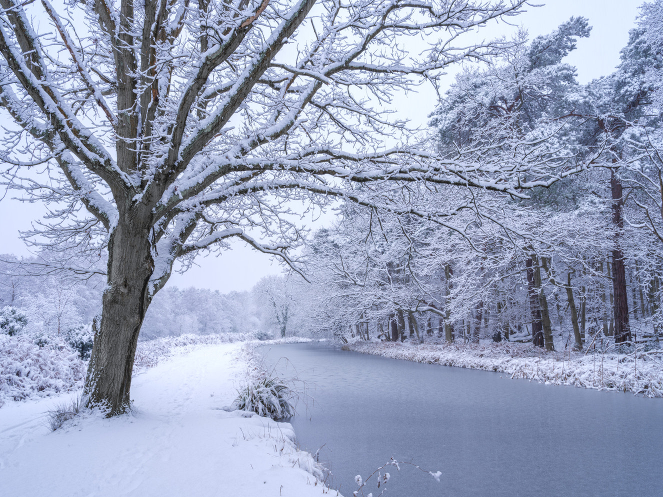 Tranquil Nature Scene with Lush Green Foliage and Serene Waters