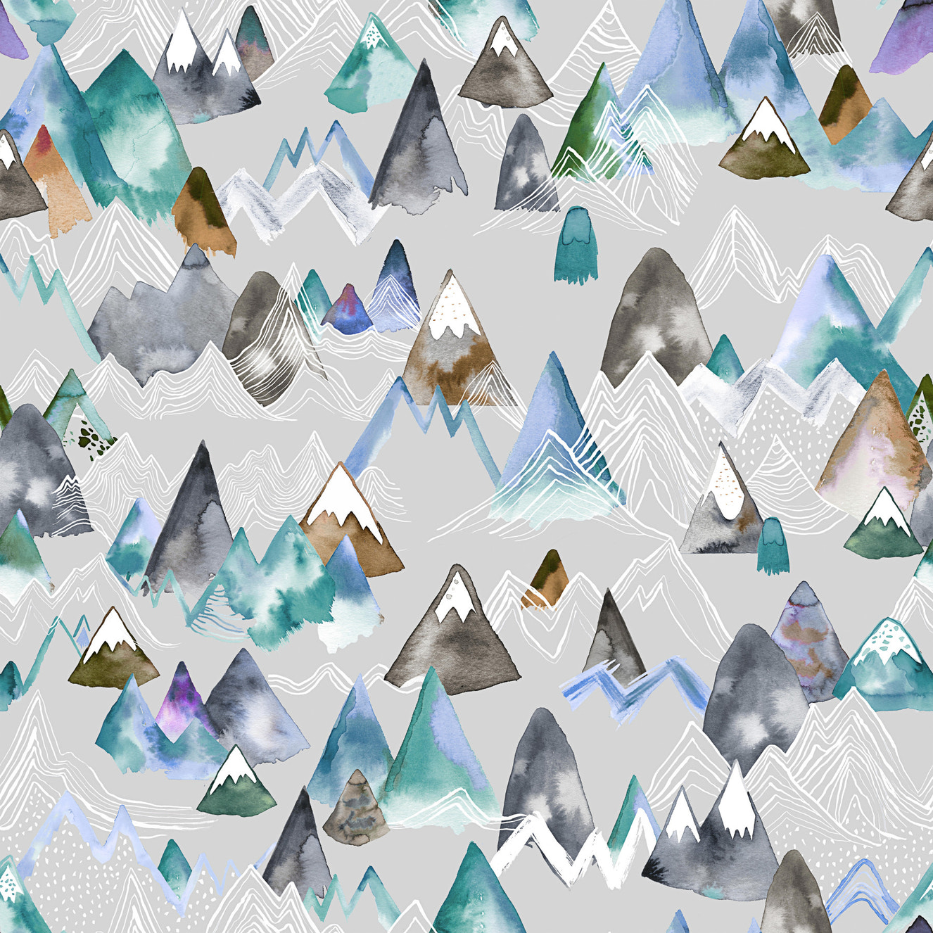 Watercolor Mountains Silver Gray