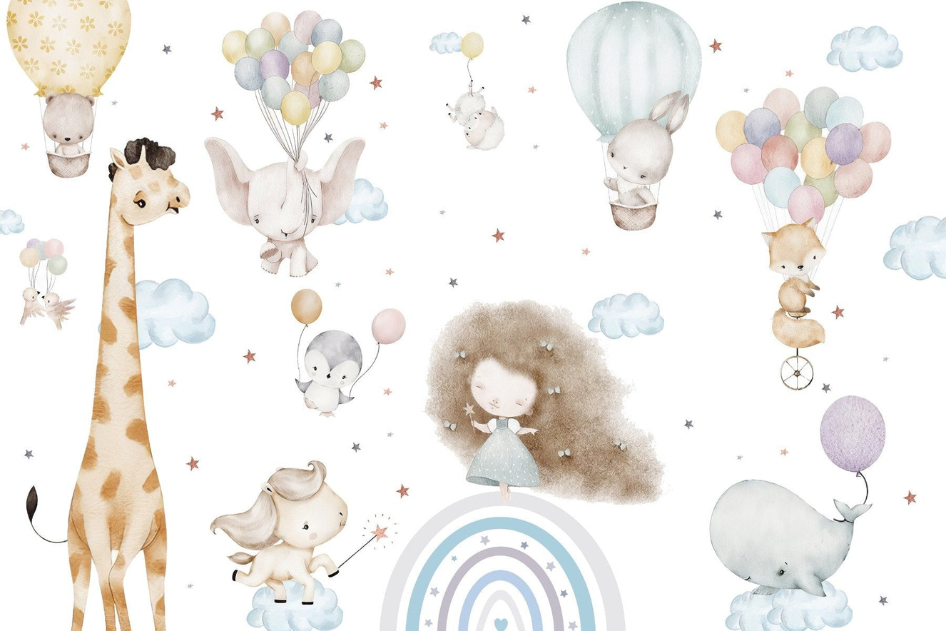 A wallpaper that is sky-themed with clouds, stars and aerial animals made to fit children might start the imaginative juices flowing.