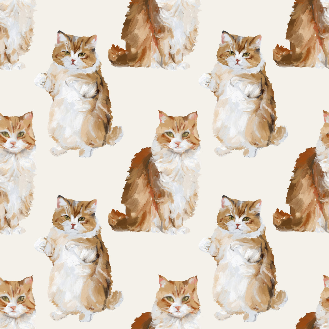 Fluffy tabby ginger cats handpainted oil painting pattern