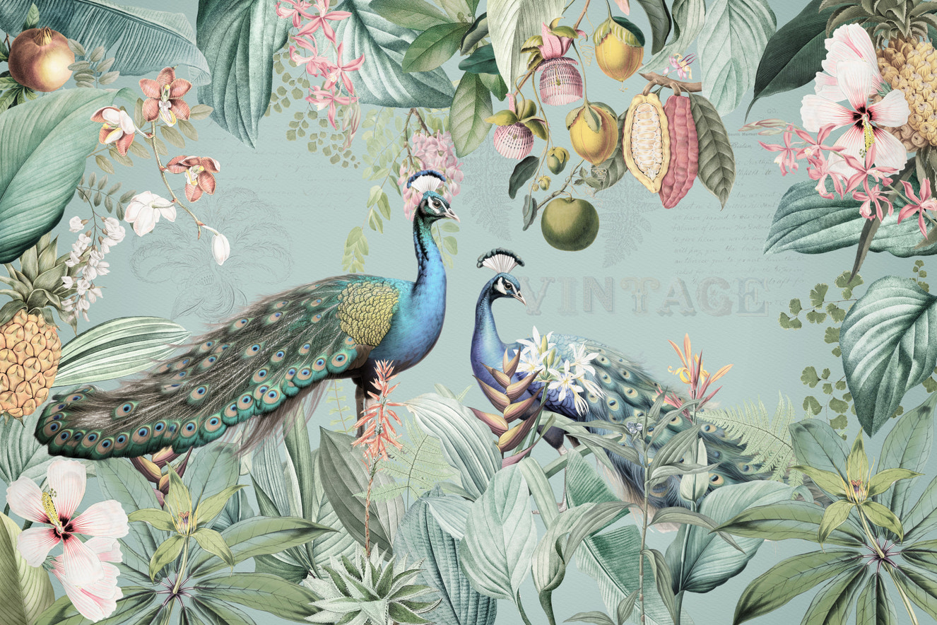 Peacock in palace garden wallpaper puts you in the palaces of royalty. Peacocks in such designs usually appear against the backdrop of grand palace buildings and lush formal gardens This kind of wallpaper is perfect for increasing the luxury and class of a home. Formal areas such as dining rooms or sitting rooms provide an atmosphere of olanzapine and opulence.