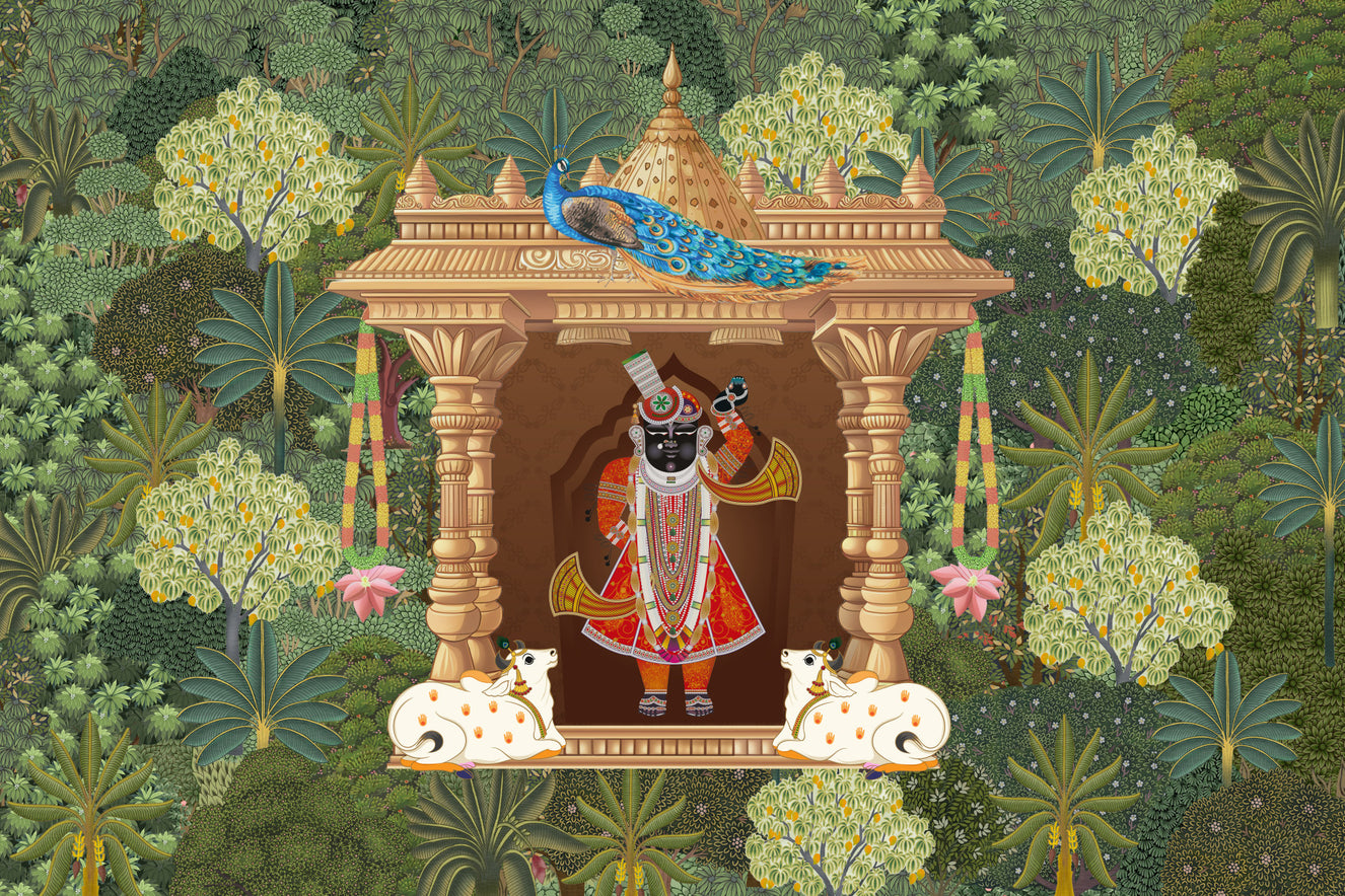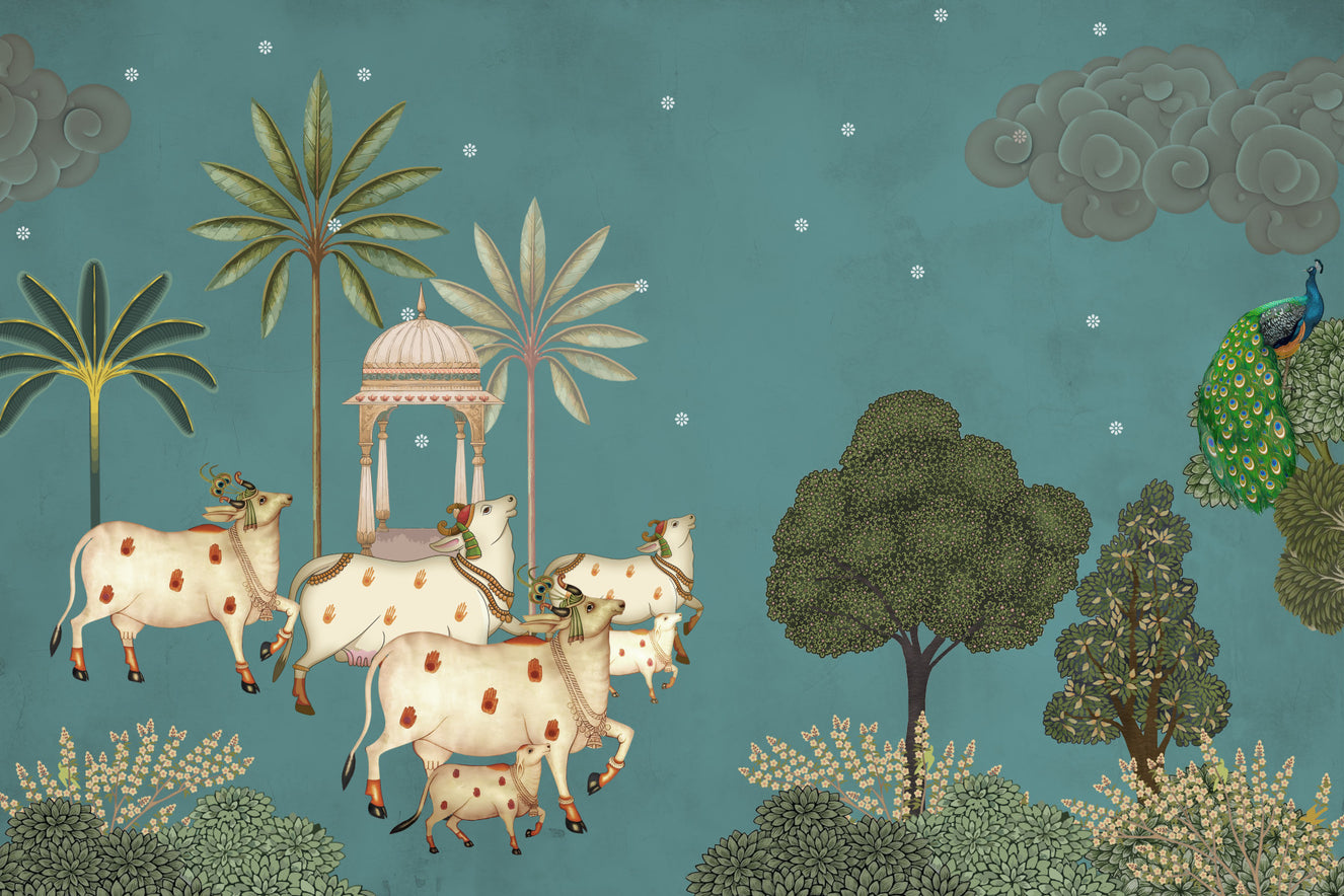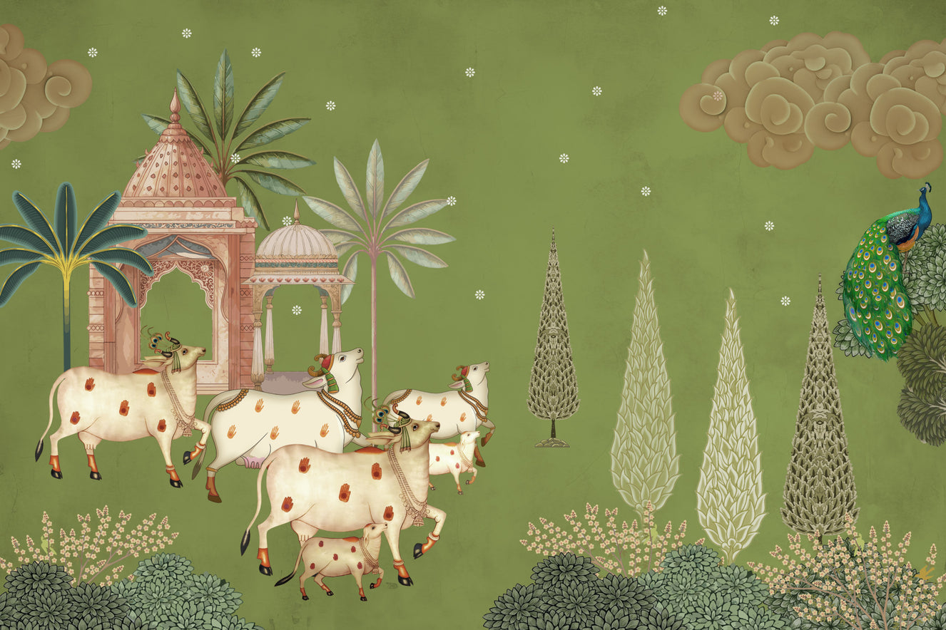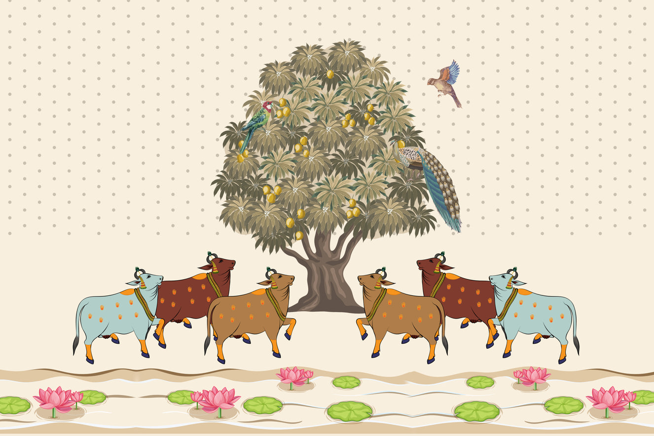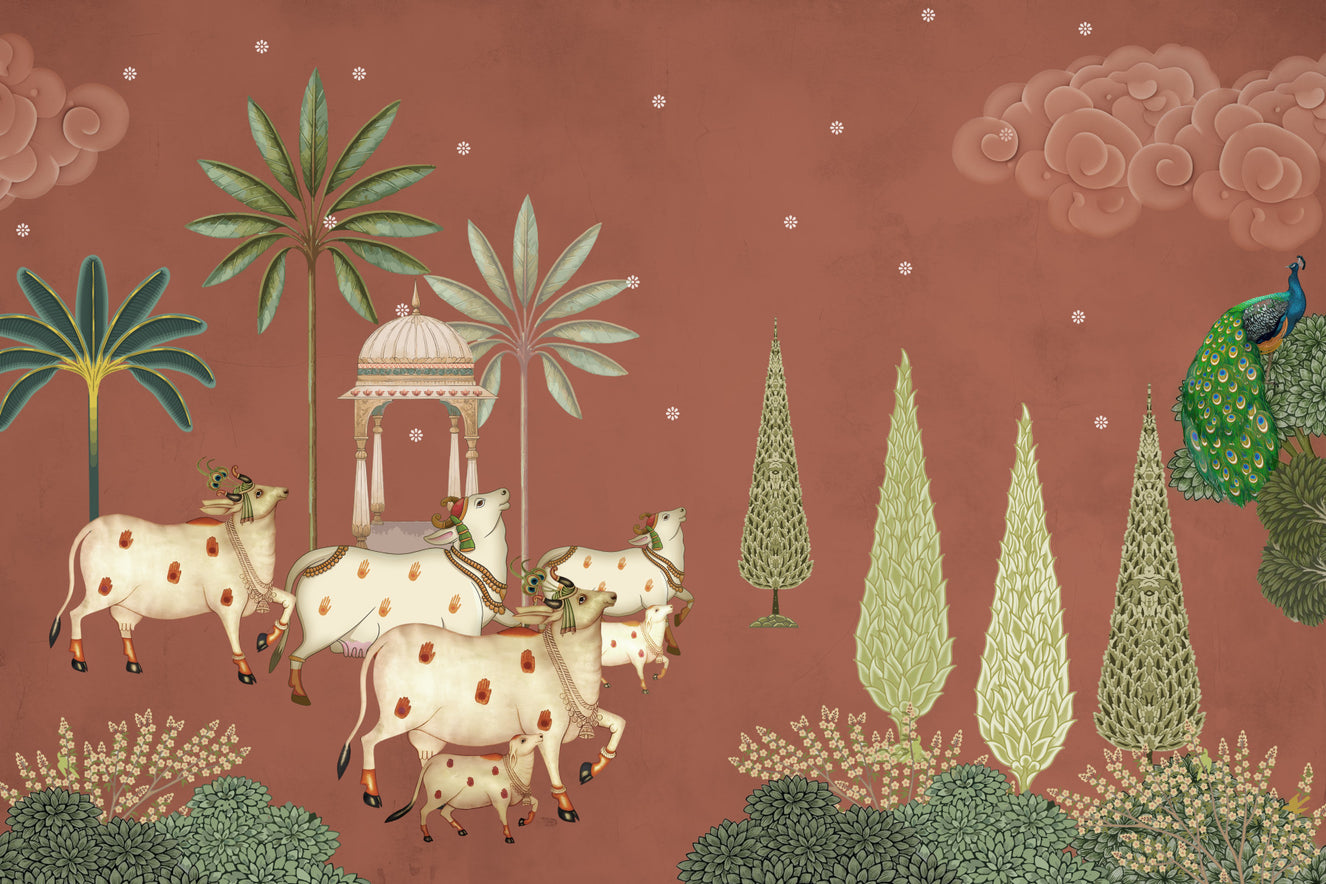 Individuals who have a particular concept in mind can get a Customizable Mandir Wallpaper, which is a perfect solution. You can see the design's precise size, choose certain hues, or even get a Pichwai Wallpaper for Pooja Room style that embodies the art forms of the past. This means that the wallpaper for the mandir wall will absolutely be in sync with the measurements and the style of your idols.
