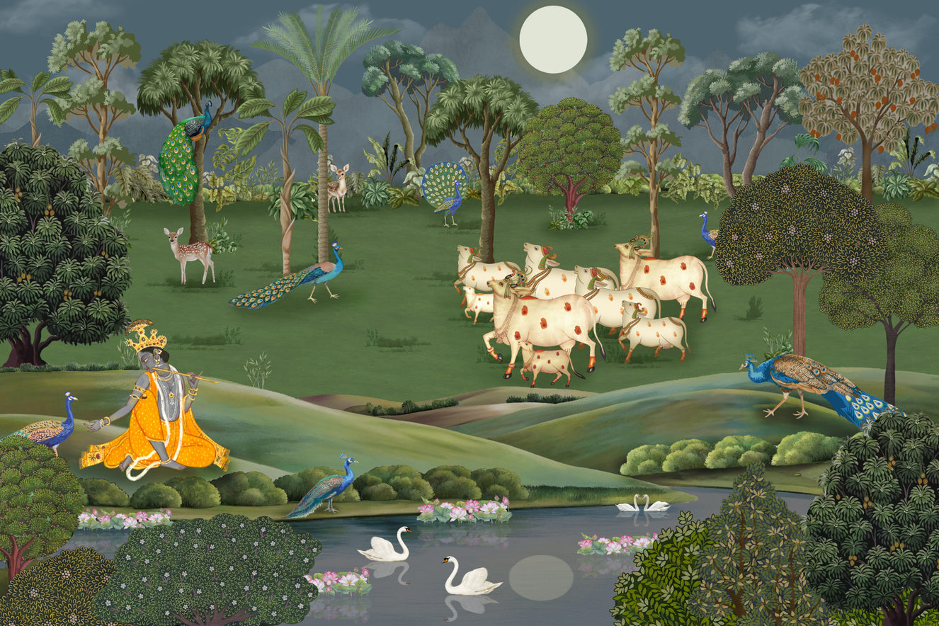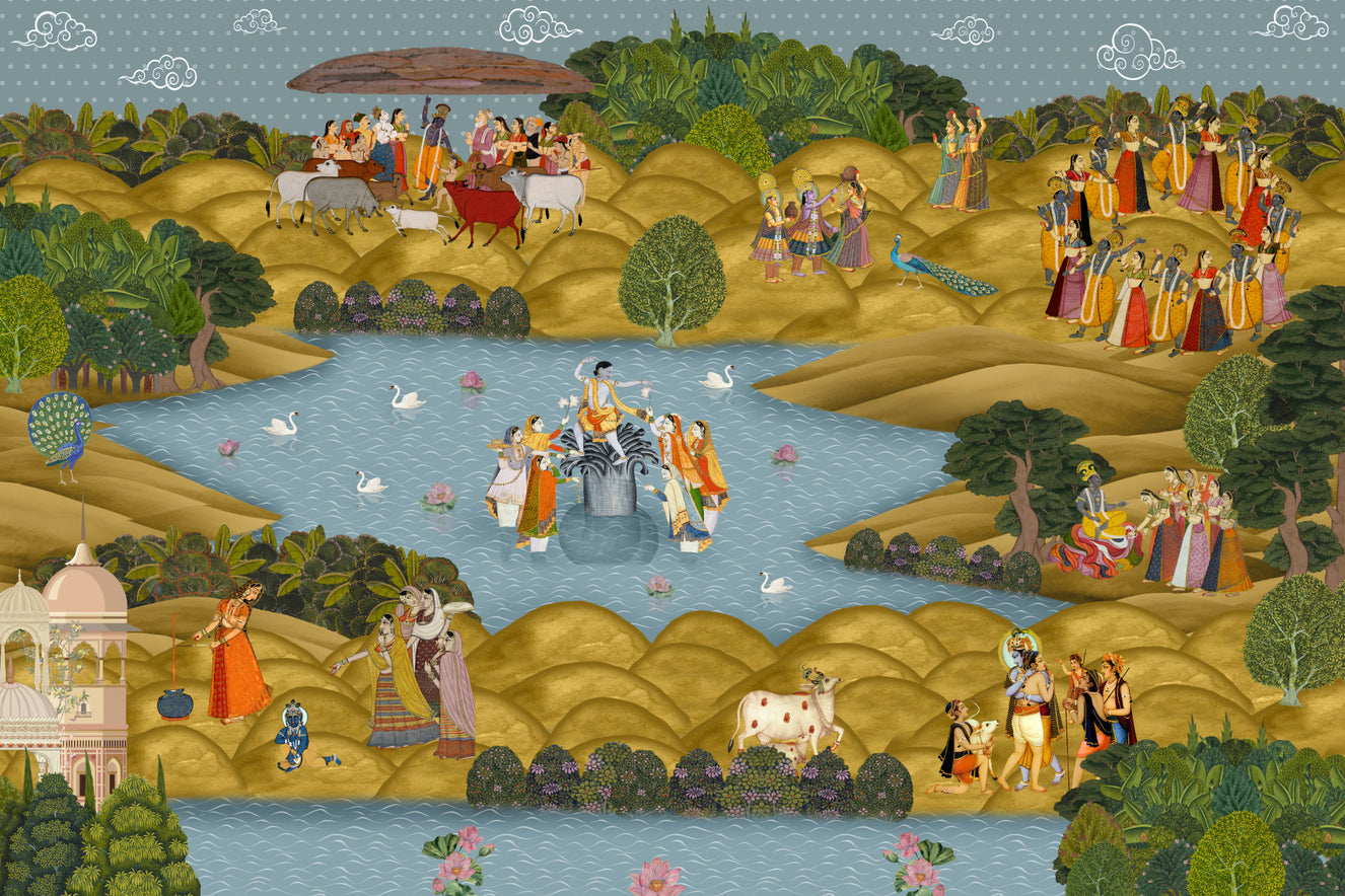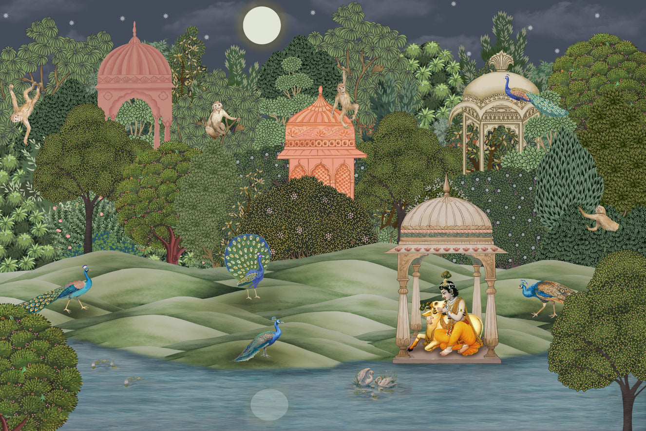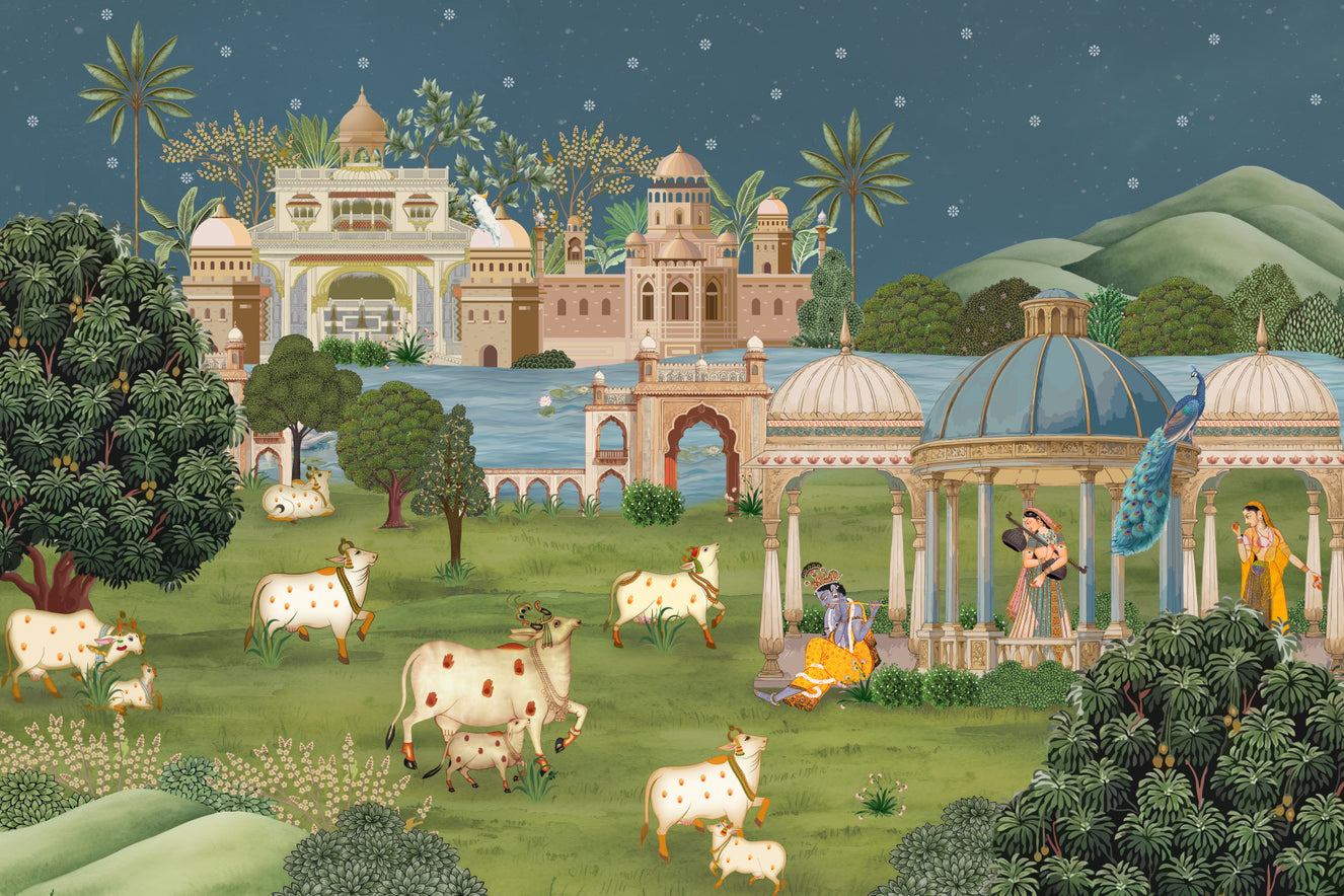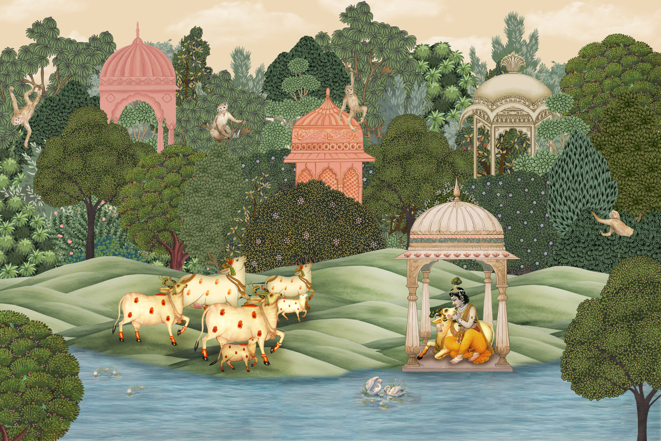 Individuals who have a particular concept in mind can get a Customizable Mandir Wallpaper, which is a perfect solution. You can see the design's precise size, choose certain hues, or even get a Pichwai Wallpaper for Pooja Room style that embodies the art forms of the past. This means that the wallpaper for the mandir wall will absolutely be in sync with the measurements and the style of your idols.