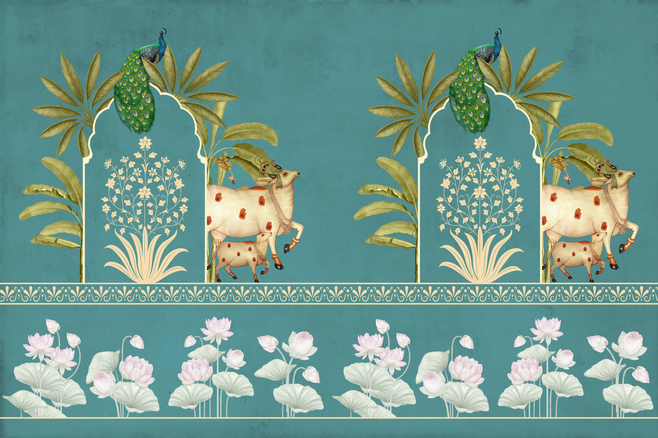 The main function of pooja room mural is to secure a peace-creating environment. The right design choices help minimize distractions and the passing of positive energy. There are a lot of homeowners who go for Peaceful Home Wallpaper themes, like soft floral patterns, gentle ombres, or subtle textures that simulate silk or grasscloth. These designs make for a clean and calming mandir background that does not overshadow the deities' idols or portraits.