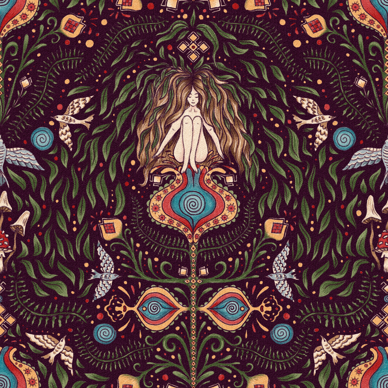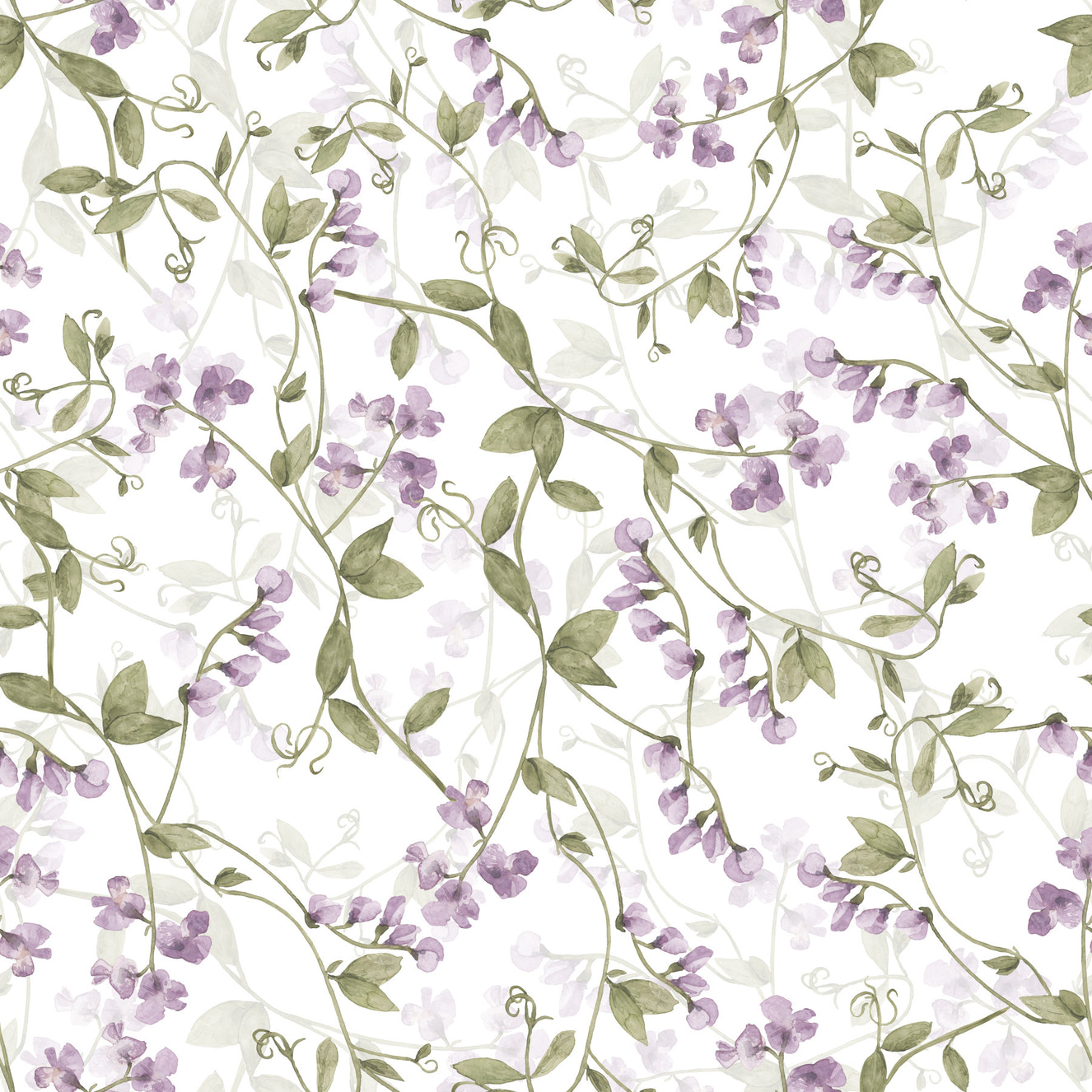 The lavender wallpaper is ideal for a calm and relaxed atmosphere. The subtle colours of the design create serenity in the room.