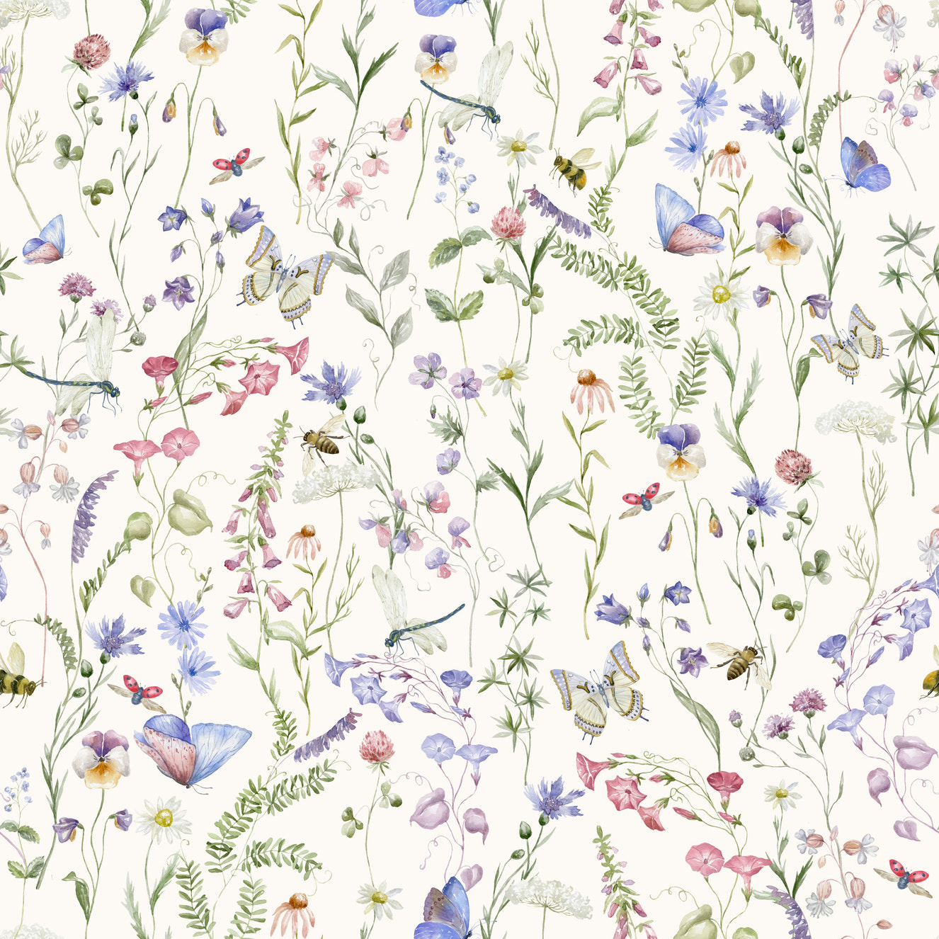 Watercolor Spring Wildflower Meadow
