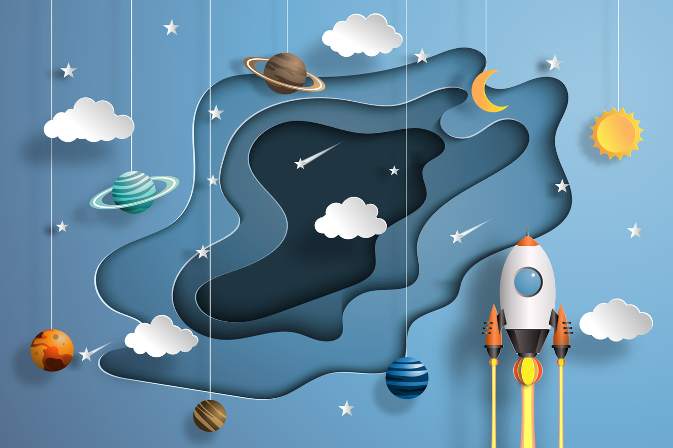 Our astronomy wallpaper features a space mission by astronauts, rockets, and the exciting objects of the universe. This astronaut in space wallpaper brings a sense of exploration and wonderment of the space mission and celestial bodies. Ideal to create a realistic and multi-dimensional feel for kids playroom, a living room, and a space-themed room.