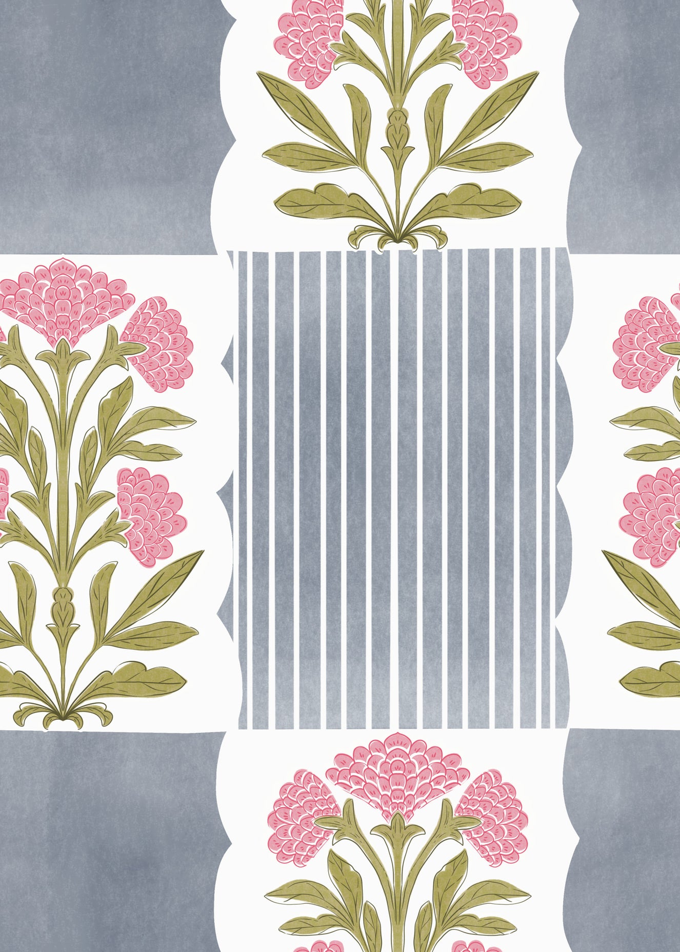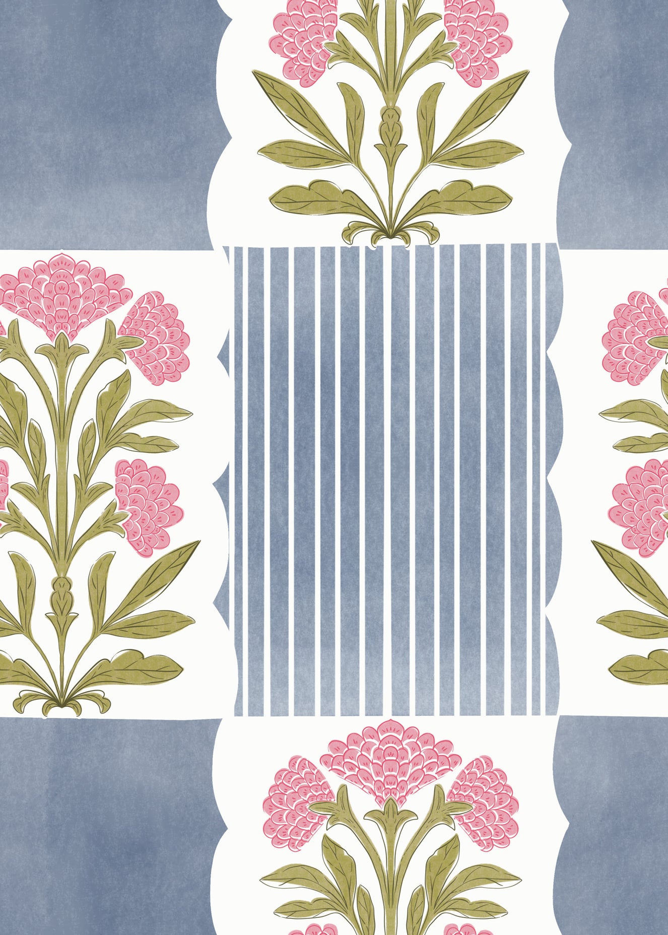 The quirky, floral striped blue wallpaper combines flowers with stripes for that touch of innovation. This will go well in bedrooms or bathrooms, offering a subtle combination of pattern and colour.