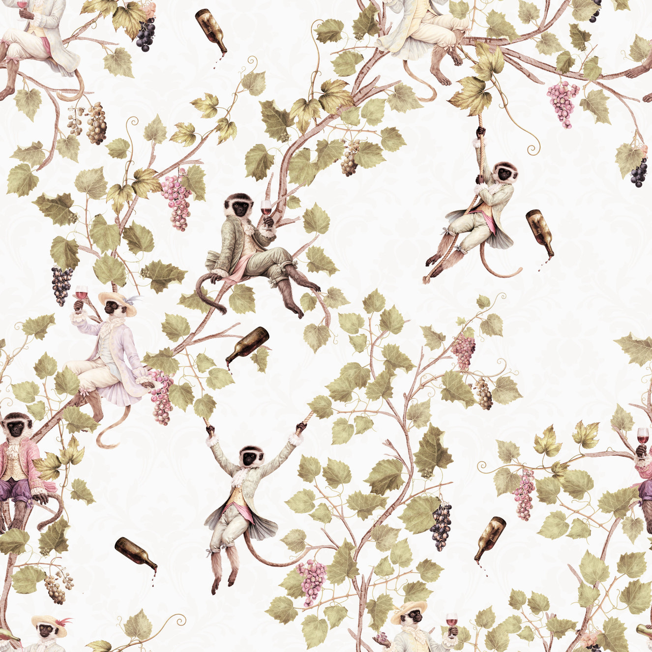 Whimsical Monkeys Playing Music Vintage Exotic Fun Garden white