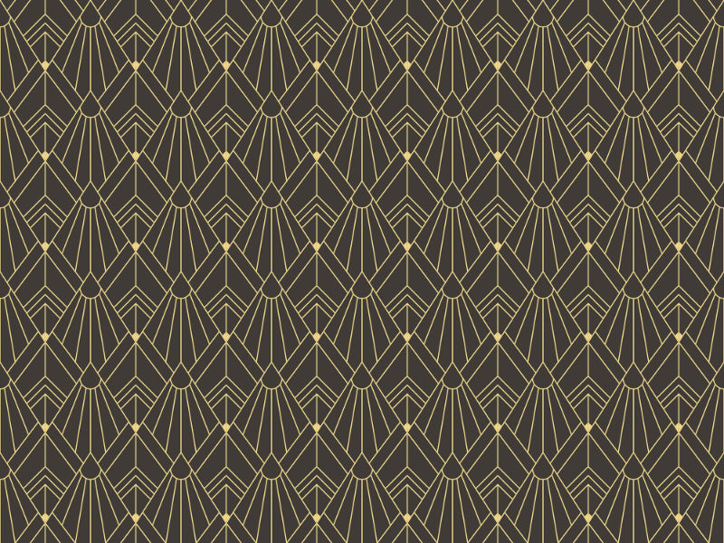 The picture depicts a mural wallpaper featuring an abstract art deco endless/repeating tiling design for a stylishly modern ambiance in any room. The wallpaper is geometric, with angular sharp patterns that suggest the sense of abundance and pioneering spirit of the Art Deco period. The design is laid out in golden bars on a strong black background, creating a standard of timeless elegance that can transform a room's look. This art deco wallpaper can be used effectively as a striking focal point on an area wall or in an open room. Because it is abstract, it can be easily styled to suit modern or classic interiors. The tile-like patterns create a regular but attractive weave that would be most at ease in minimalist or maximalist design and is, therefore, a flexible choice for anyone seeking to introduce golden-age glitz into their space.