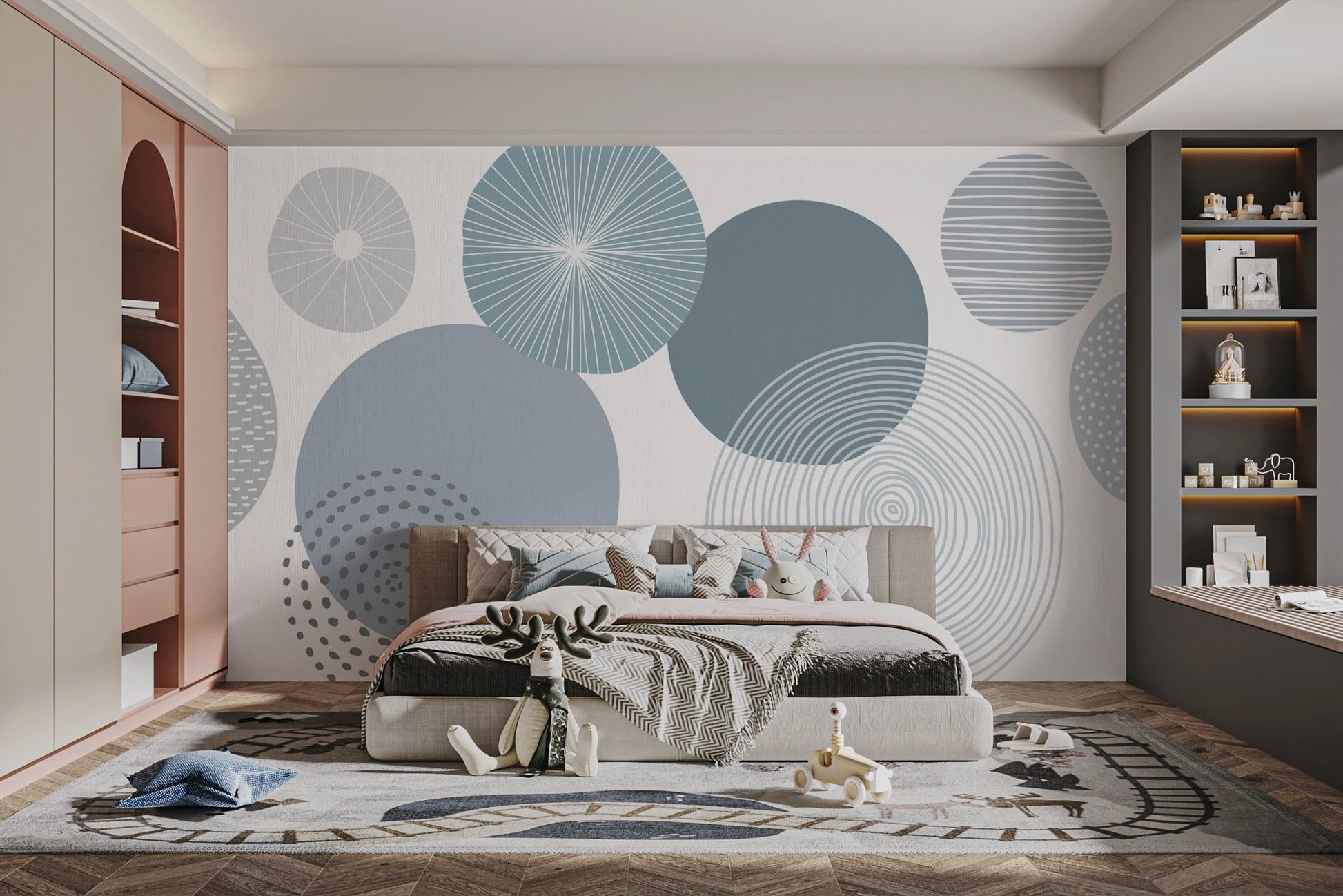 Make a bold yet serene statement with our Abstract Blue Circle Wallpaper. Featuring an artful blend of hand-drawn circular patterns in calming blue hues, this blue wallpaper adds depth, texture, and modern elegance to any room. The playful yet balanced design feels fresh and contemporary, perfect for accent walls in bedrooms, home offices, or creative spaces. Each circle tells a different story some radiate with fine lines, others dance with dots creating a harmonious rhythm across your walls. Easy to apply and removable, it's an ideal choice for renters or design lovers looking to refresh their space with minimal effort.