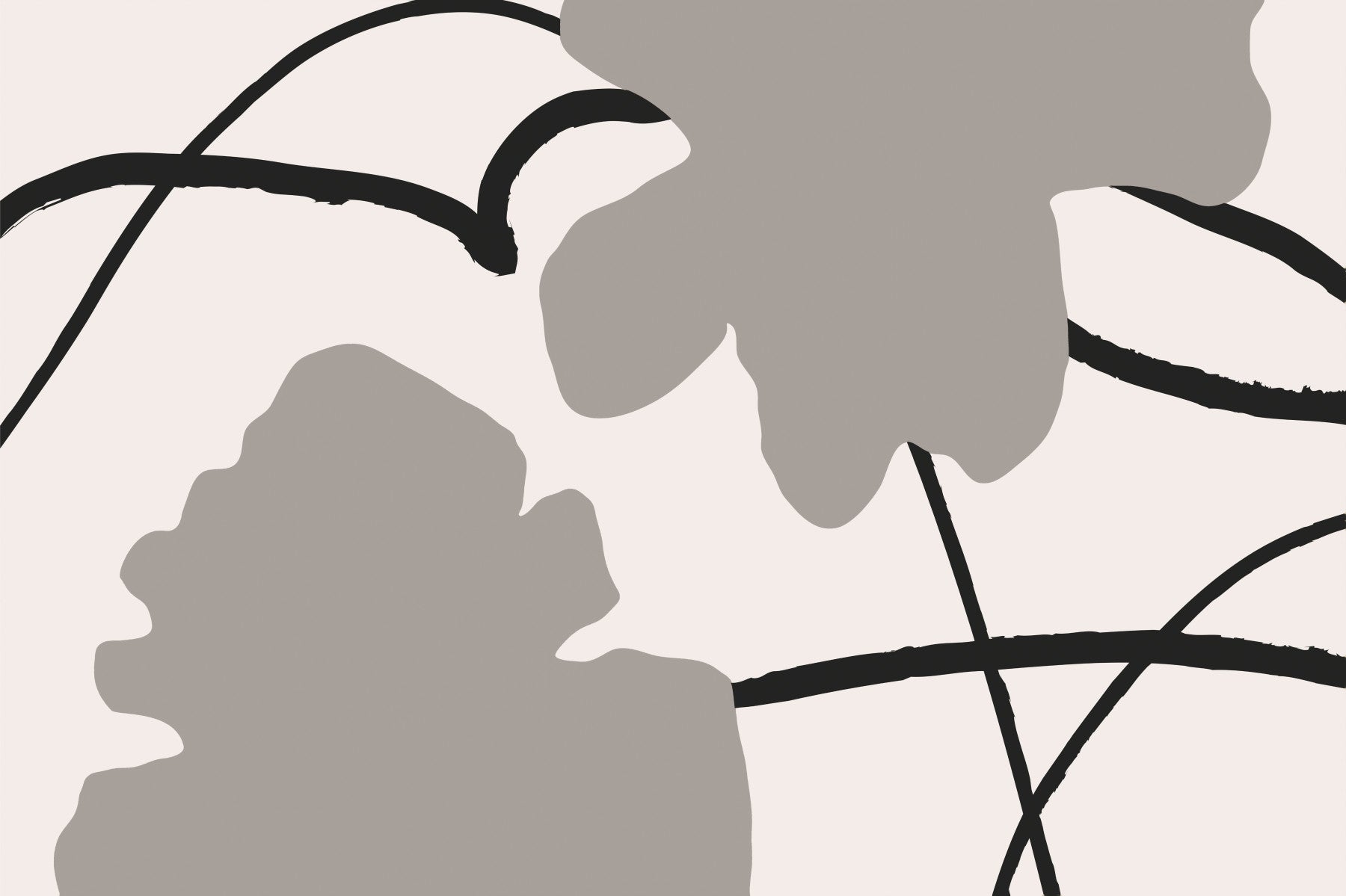 Bring modern elegance to your home with this minimalist wallpaper. Its fluid black brushstrokes contrast beautifully with the muted gray shapes, set against a light backdrop. This design offers versatility and works wonderfully as wallpaper for walls in living rooms, bedrooms, or hallways. Let this artistic pattern create a peaceful and sophisticated atmosphere in your interiors.