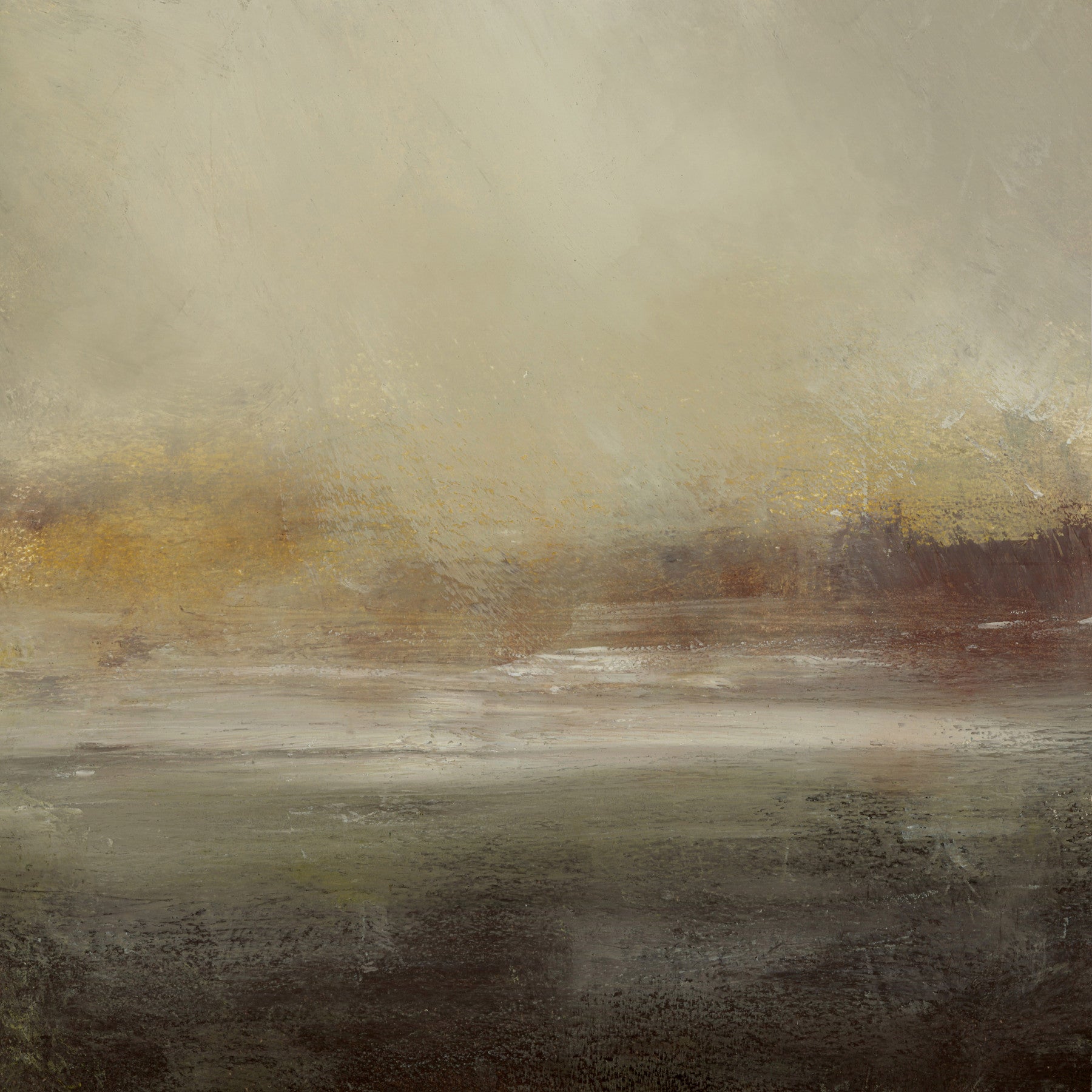 This wallpaper features an abstract horizon landscape. Shades of beige, brown, and gold create a calm, blended effect. The design evokes a serene, open feel. Install this wallpaper for walls in living rooms, bedrooms, or offices. It suits modern, rustic, or minimalist interiors. The neutral color scheme makes it easy to match with existing decor. It will enhance spaces with a touch of artistic serenity.