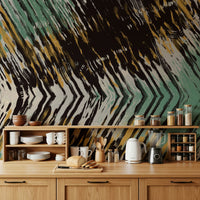 Bold strokes form an intriguing abstract pattern, featuring a dynamic mix of teal, beige, white, and brown. The expressive brushwork creates a unique design that brings a touch of modern art to any space. This wallpaper for walls offers a lively, energetic backdrop that elevates interiors. Ideal for a living room, office, or bedroom, this wallpaper brings visual interest without being overwhelming. It injects personality and a unique design flair into the interiors.