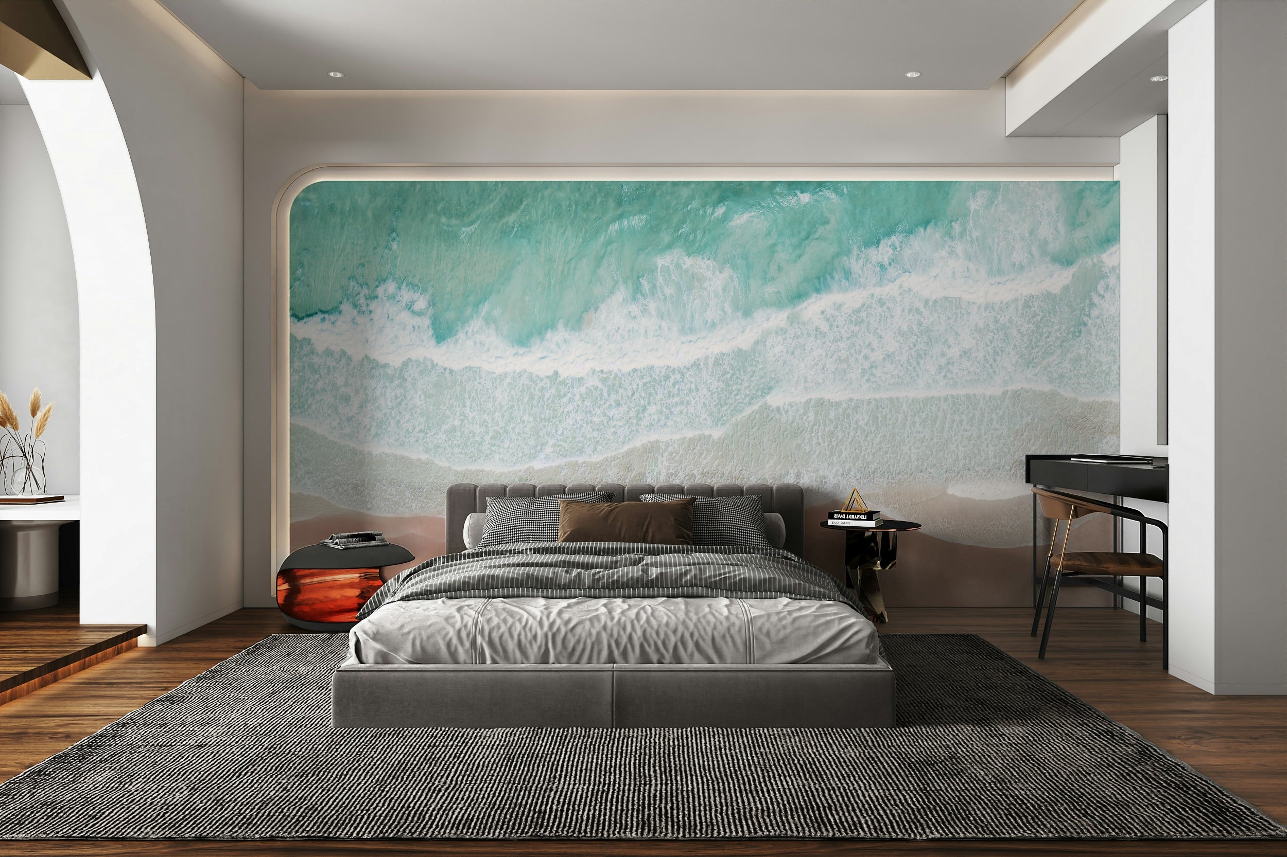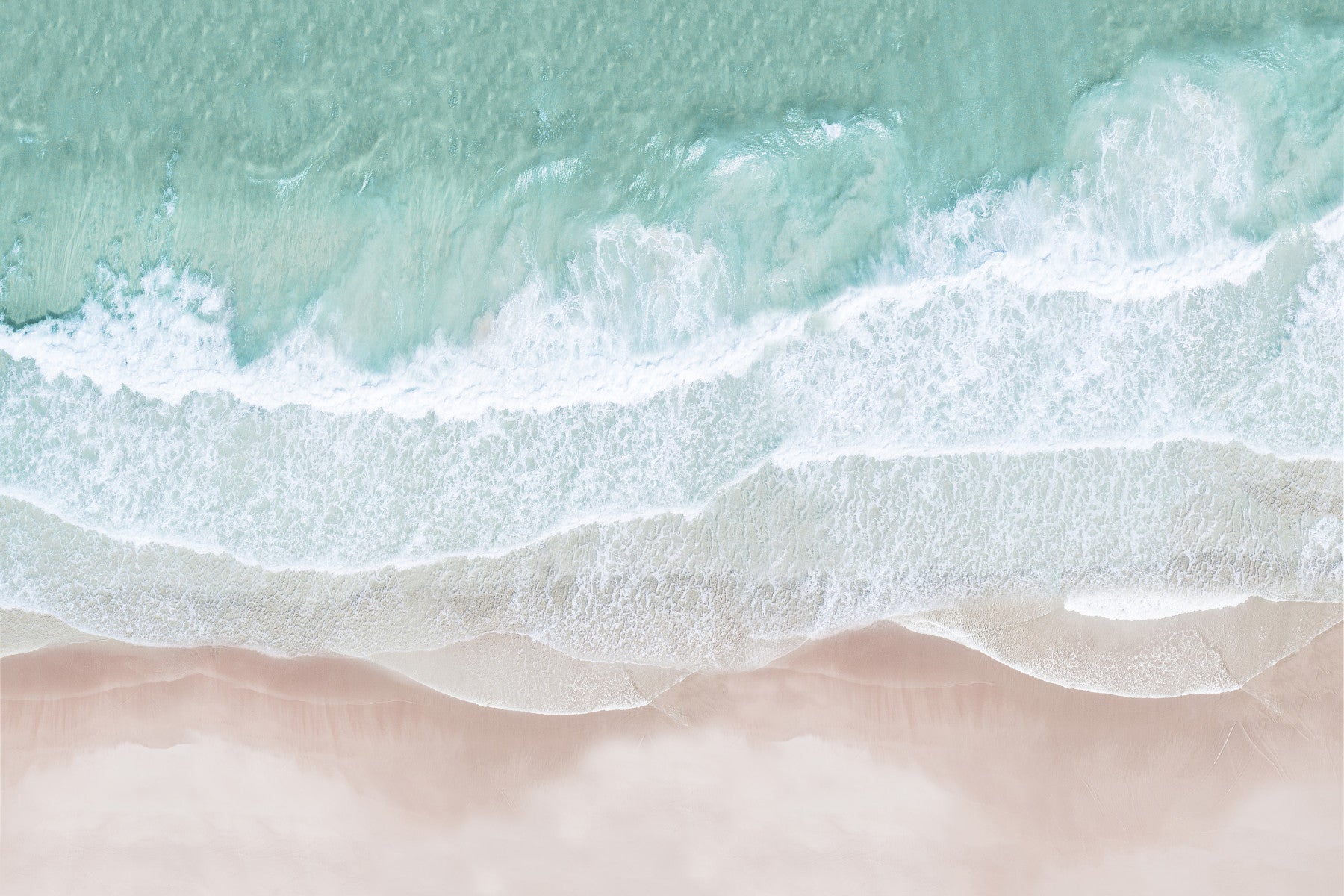 Experience the serene beauty of an aerial sea view, where soft, pastel-hued waves gently caress a pristine pink beach. This breathtaking image captures the tranquil rhythm of the ocean, showcasing the delicate interplay of turquoise waters and foamy white crests. The overhead perspective offers a unique and captivating view of nature's artistry, creating a calming and peaceful mood perfect for a relaxing digital wallpaper. The soft color palette and smooth textures invite a sense of tranquility and escape, making it ideal for any desktop or mobile device.