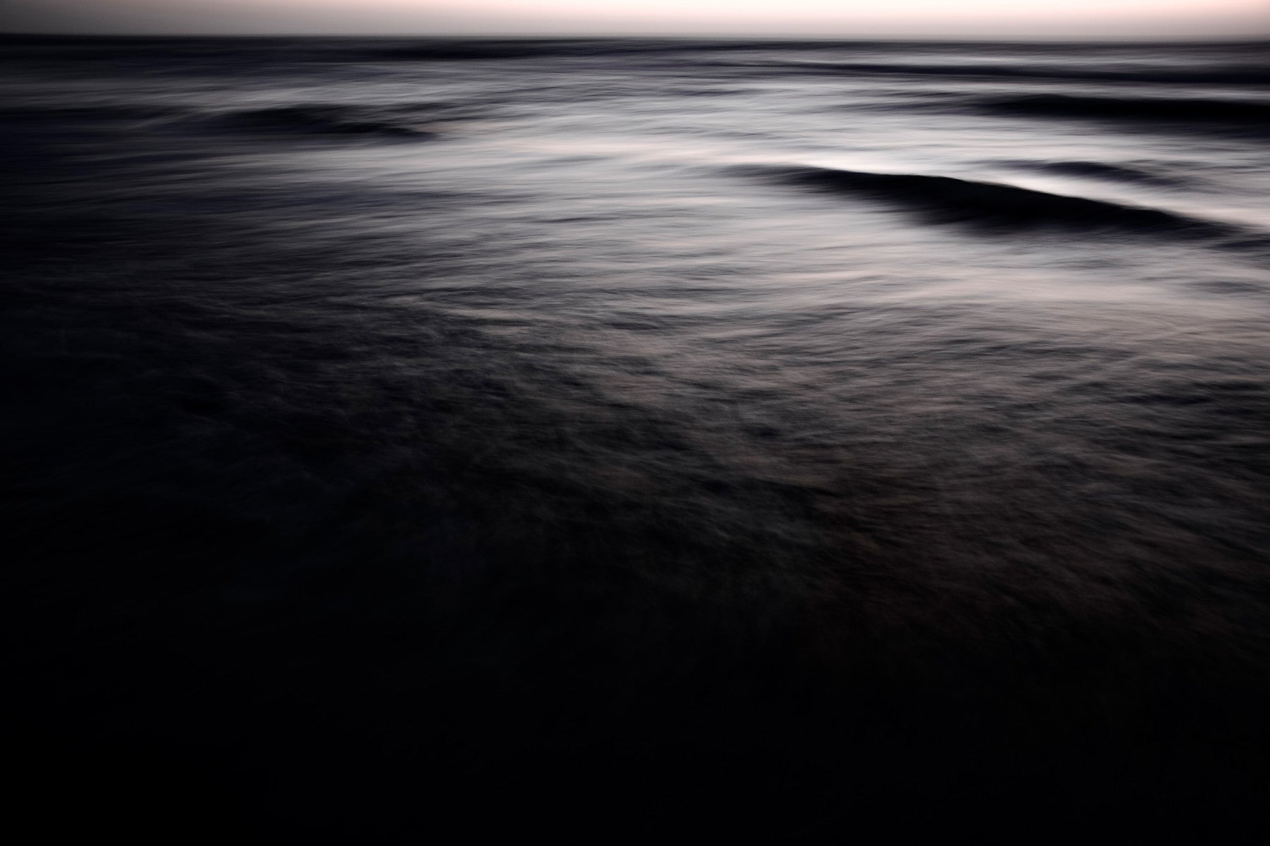 Immerse yourself in the tranquil depths of 'After the Sun Has Set III,' a captivating wallpaper that captures the ocean's essence in the twilight hours. The image depicts the restless sea, its surface blurred into ethereal streaks of silvery grey and deep indigo, suggesting the endless movement of water and the absence of sun. This artwork evokes a sense of calm introspection, inviting you to lose yourself in the subtle interplay of light and shadow on the water's surface. The darkening gradient that envelops the lower portion of the image adds to the mystery, pulling the viewer into the quiet drama of the post-sunset seascape. Perfect for those seeking a peaceful and evocative digital backdrop that whispers of the ocean's secrets.
