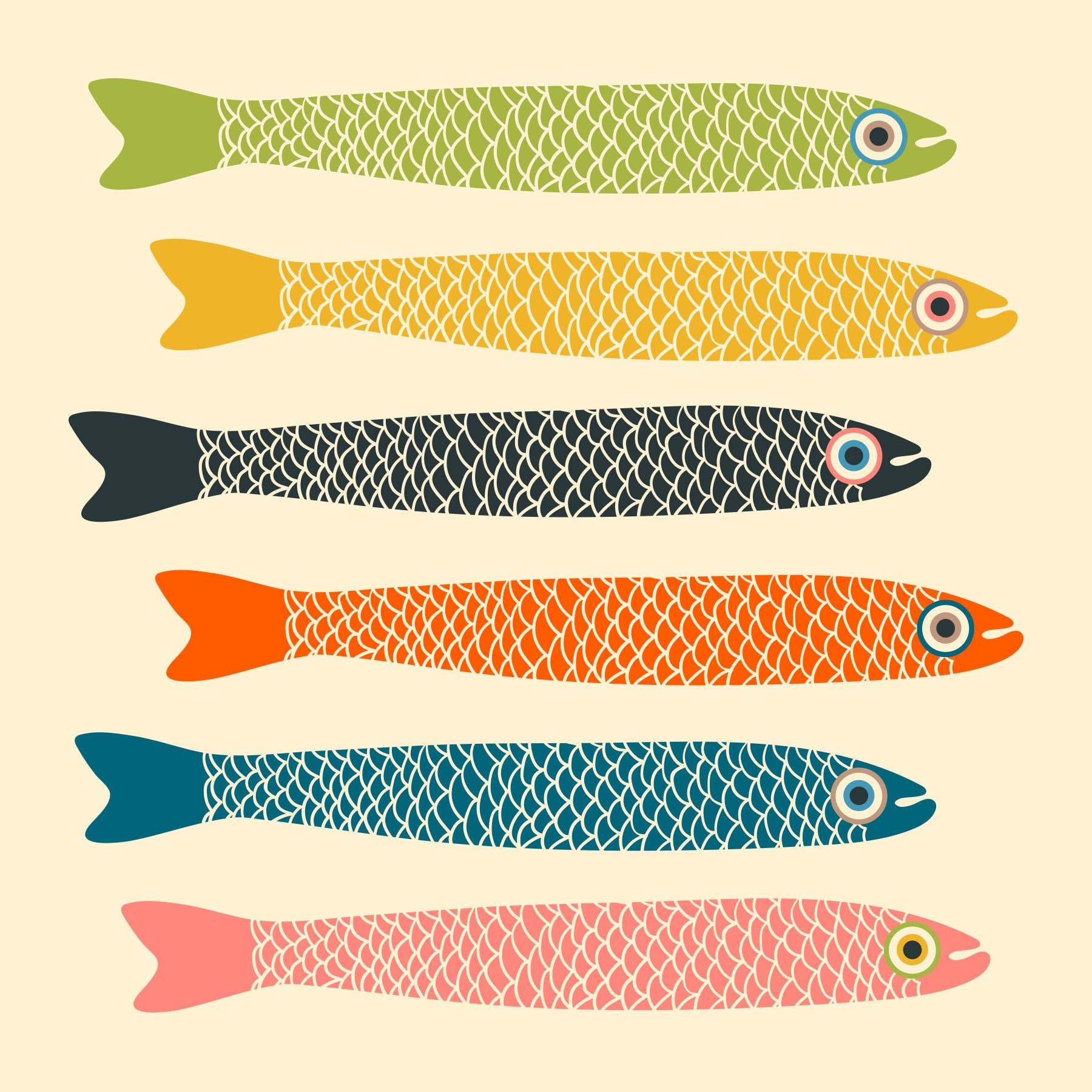 Colorful Fish Anchovies Retro Wallpaper Mural