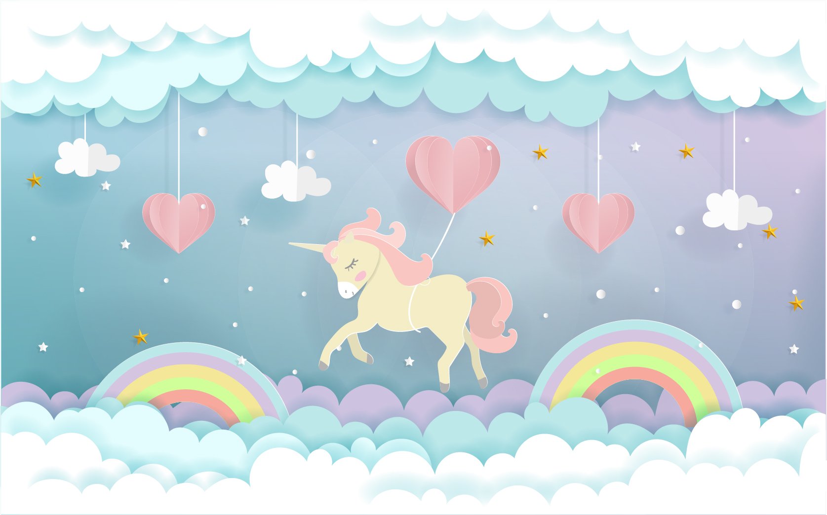 This unicorn wallpaper will add a magical touch to your child's room. This rainbow cloud mural for girls makes any room happy and creative with its magical unicorn, fluffy clouds, rainbows, and heart-shaped balloons. The bright colours make a happy space that encourages creativity and fun. It's simple to implement and will look great for a long time. You can shop with confidence knowing your payments are safe, and you can give your child a fun room they'll love. It looks great in bathrooms, playrooms, or any other room that needs a little fantasy.