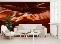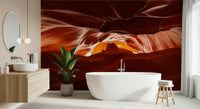Bring the majesty of the Antelope Canyon to your home with this stunning image. Waves of sandstone curve and flow, painted in hues of deep red and golden light. The texture provides depth, making rooms feel larger and more dynamic. This wallpaper for walls is suitable for hallways, dining rooms or even a bathroom, and is versatile enough to suit modern, industrial, or minimalist interiors.