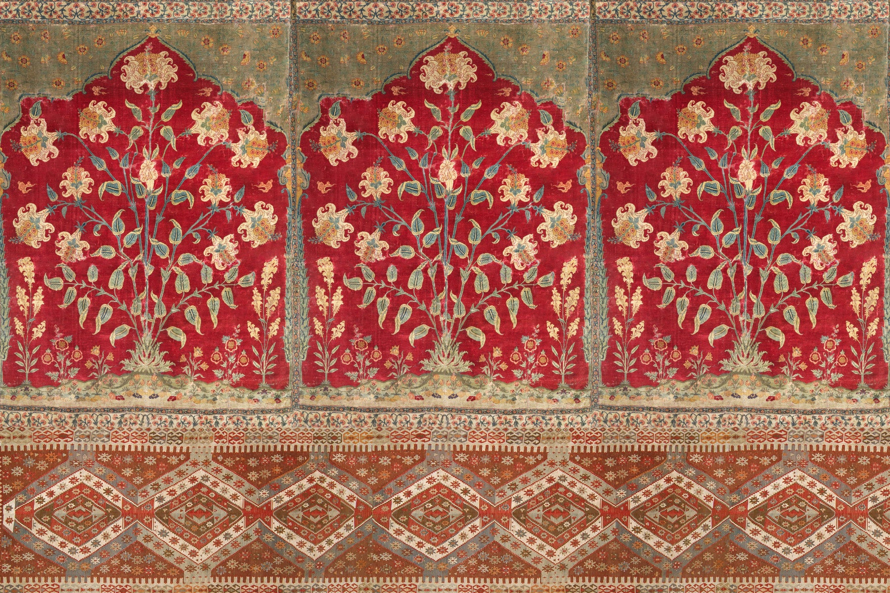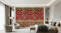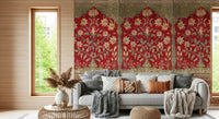 Envelop your space in the timeless elegance of our 'Antique Garden Tapestry' wall decor. Evoking the charm of a bygone era, this design features intricately detailed floral motifs set against a rich, aged crimson backdrop. Delicately rendered blooms and verdant foliage climb gracefully, reminiscent of a classic hand-woven tapestry discovered in a centuries-old manor. The design is bordered by a subtle geometric pattern, adding a touch of earthy sophistication and visual depth. The weathered appearance enhances the vintage feel, giving the impression of a cherished heirloom. Transform your room into a serene retreat with this captivating design, bringing a touch of historic beauty and refined grace to your walls. It is ideal for adding a sophisticated and cozy ambience to any room.