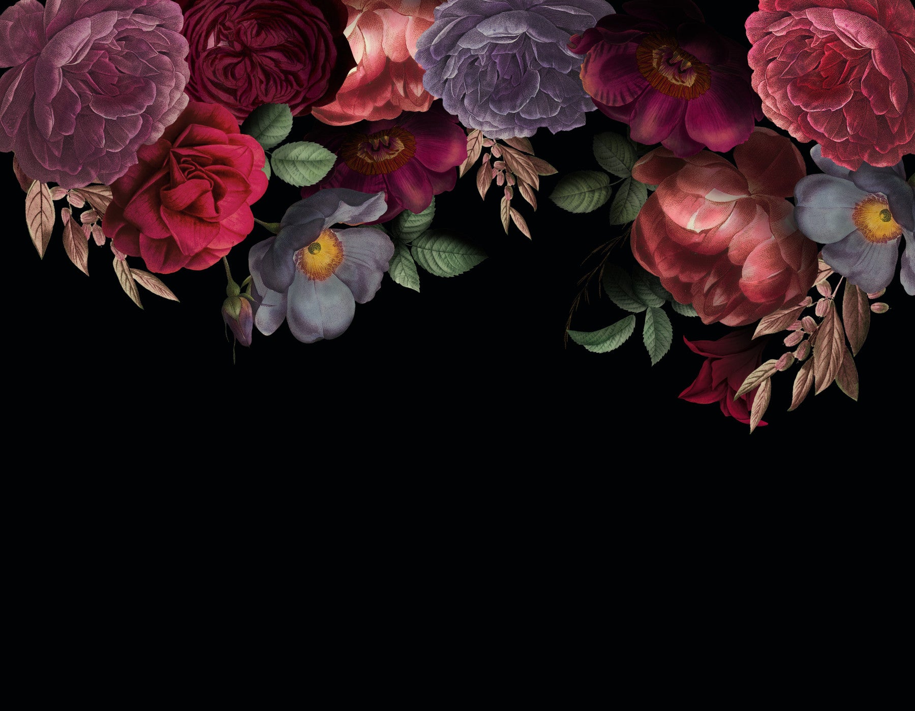 Antique Roses and Peonies with Dark Dramatic Botanical Garden Charm Wall Mural