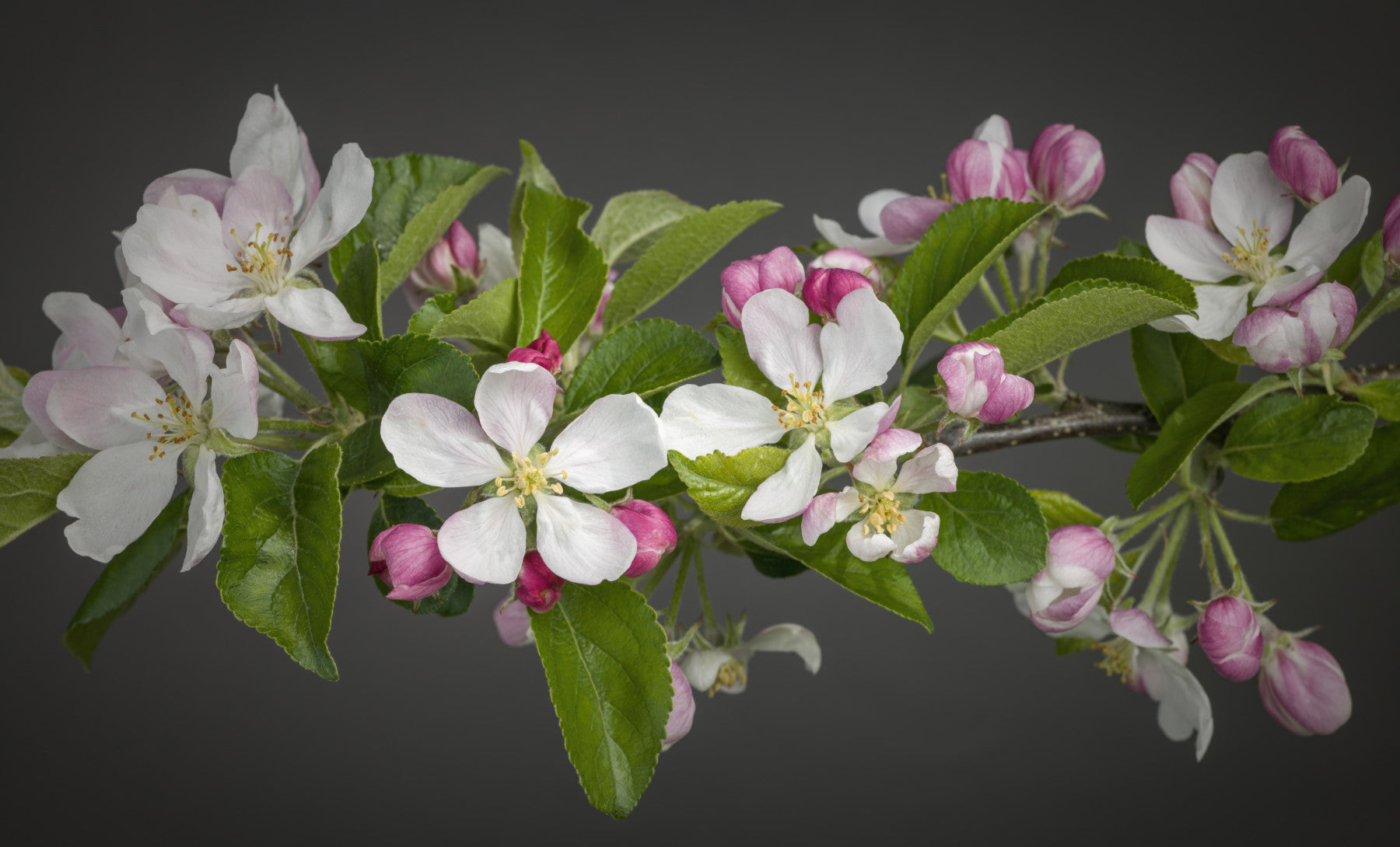 Delight in the subtle beauty of spring with this apple blossom wallpaper for walls. Featuring delicate white and pink blooms against a soft gray backdrop, this design brings a touch of natural serenity into any room. The gentle colors and detailed botanical elements create a peaceful atmosphere, ideal for bedrooms, living rooms, or even a calming office space. Install it in your dining room for a sophisticated feel or a kitchen for a lively breakfast nook. It complements light and dark interiors.