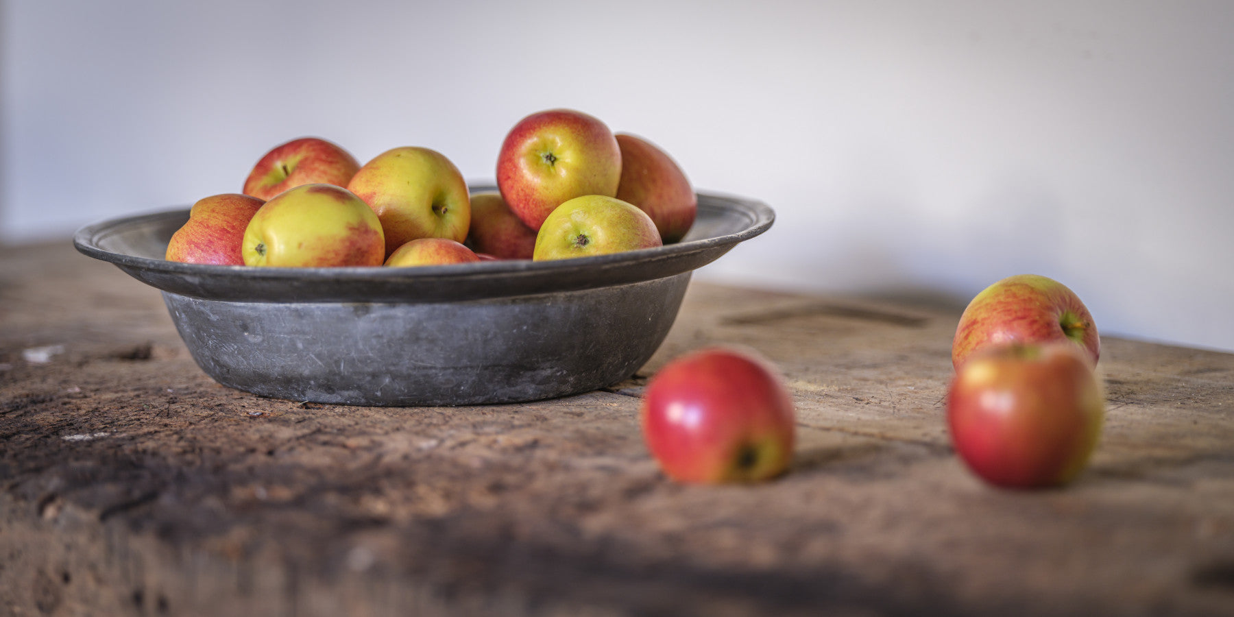 Apples in Bowl Wall Mural captures a rustic still-life scene with red and yellow apples resting in a weathered metal bowl on a worn wooden table. This mural wallpaper brings a cozy, homely touch to kitchens, dining rooms, or farmhouse-style spaces. The natural light and rich textures highlight the simple beauty of everyday objects. Ideal for those who love vintage charm and country living, this wall mural adds warmth and a grounded, lived-in feel to your interiors. A wholesome wallpaper for walls that turns a quiet moment into a timeless visual feature.