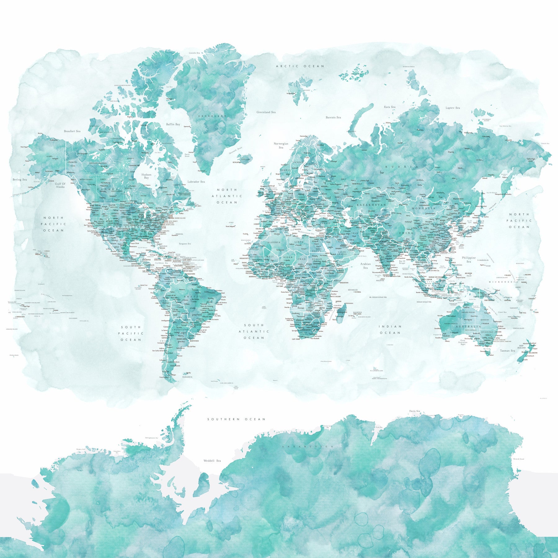 Aqua blue watercolor map wall art