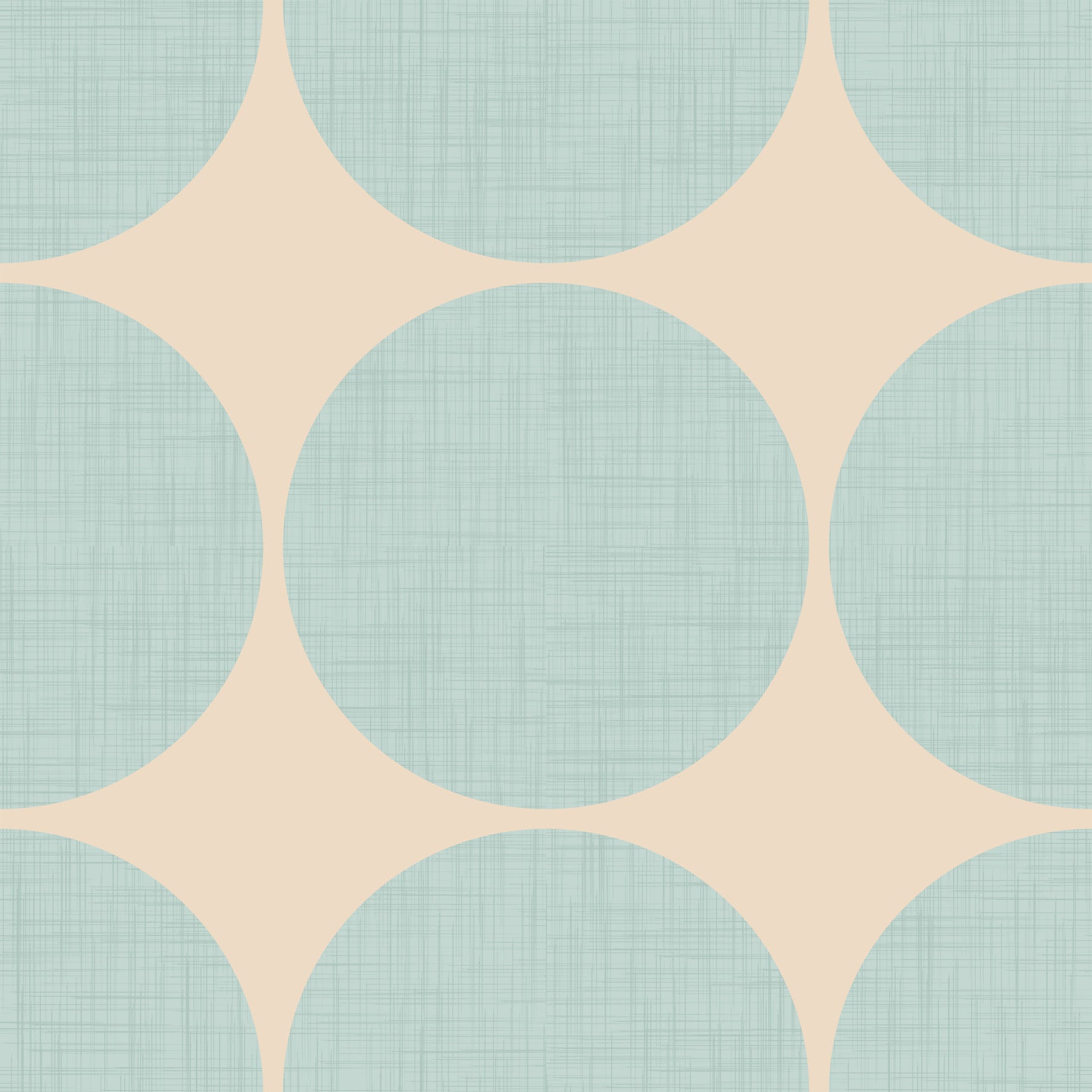 Aqua Dot Swirl Wallpaper Aqueous circles, unique mid-mod wall print.