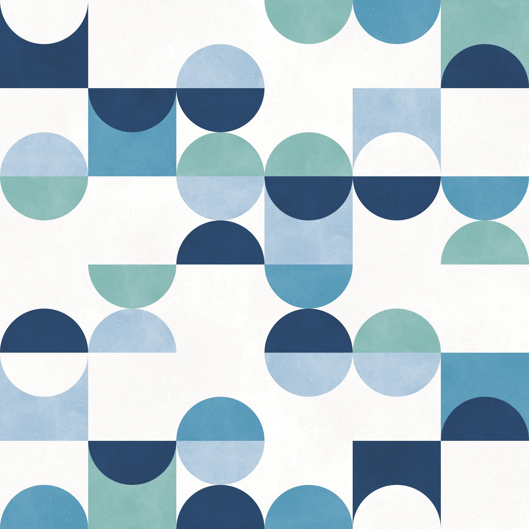 Geometric Aqua Harmony wallpaper for walls cheerful circle square print.